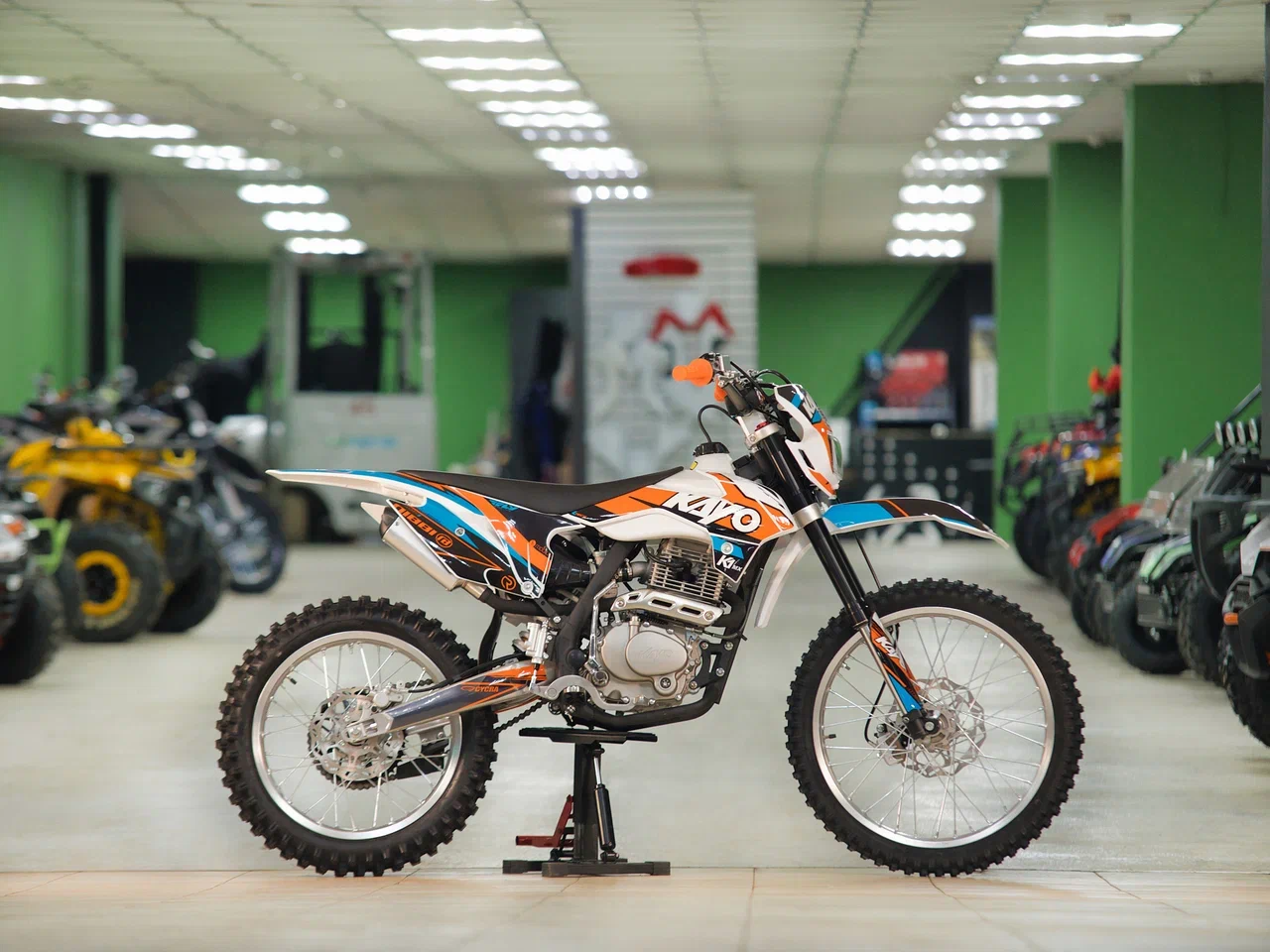 Мотоцикл KAYO K1 250 MX – “народная” версия внедорожного мотоцикла от компании KAYO. Идеальный снаряд для внедорожного экстрима, представляющий собой оптимальный баланс производительности и технической оснащённости, поэтому он идеально подходит как новичкам, так и опытным райдерам. Удобный, простой и надёжный мотоцикл, который полностью оправдывает свою цену.