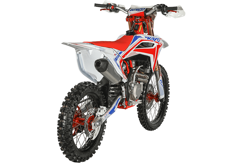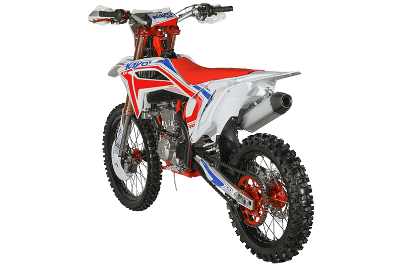 На обновлённой модификации мотоцикла установлены высокопроизводительные амортизаторы KAYO Racing Performance. Подвеска располагает полным диапазоном настроек, позволяющих адаптироваться под разные эксплуатационные задачи. Длина переднего амортизатора 950 мм, длина заднего амортизатора 480 мм.
