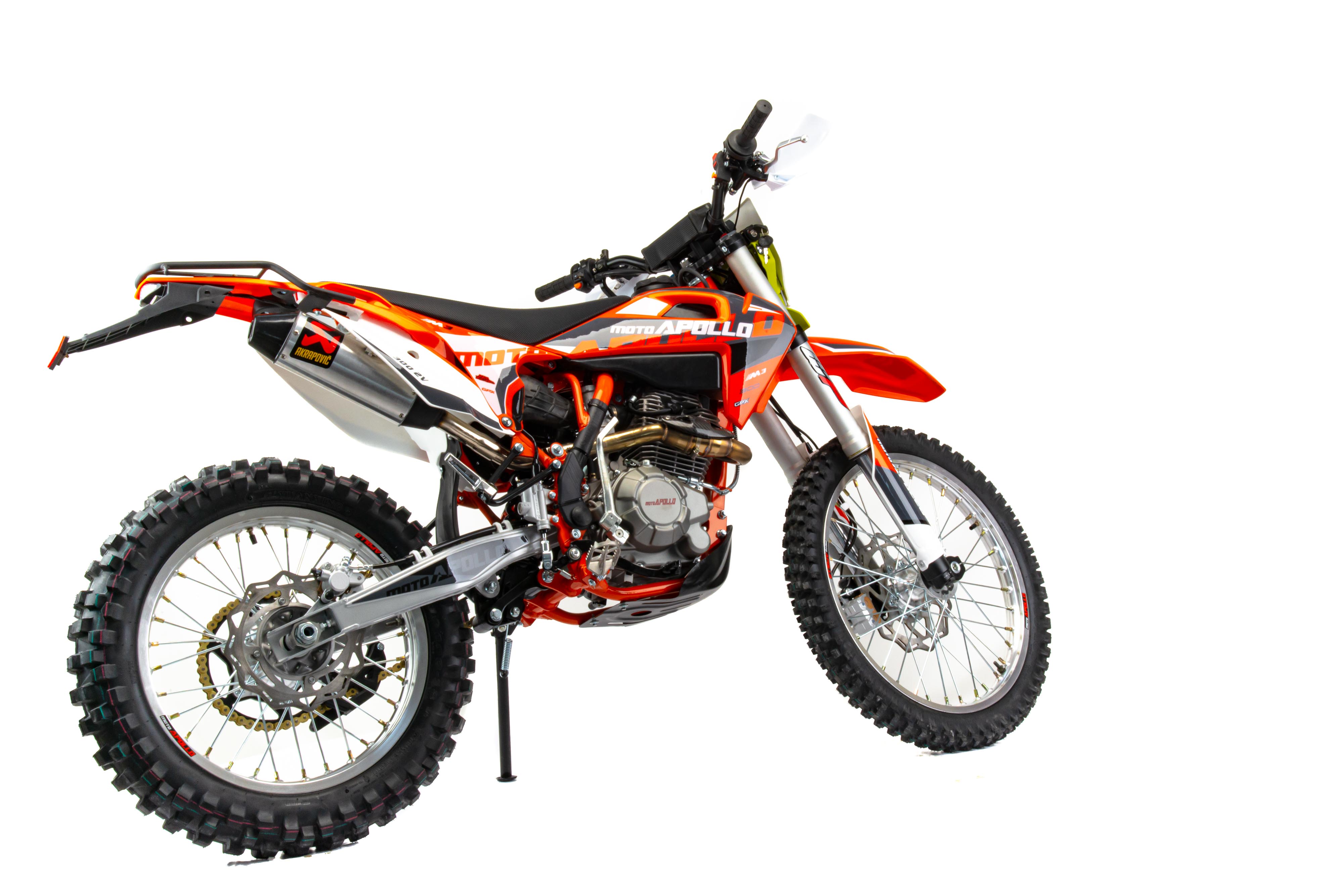 Мотоцикл Кросс Moto Apollo M3 300 это отличный кроссовый мотоцикл. Имеет хорошую проходимость и тяговую мощность за счет установленного двигателя ZONGSHEN 175FMM мощностью 24 л.с. ,и карбюратором NIBBI PE 30. Разгоняется до 140 км/ч. Выхлопная система с резонатором "AKRAPOVIC" совместно с системой POWER BOMB, которая увеличивает мощность на низких оборотах.и улучшает дожигание топливной смеси, что ведет за собой экономию топлива на средних оборотах.