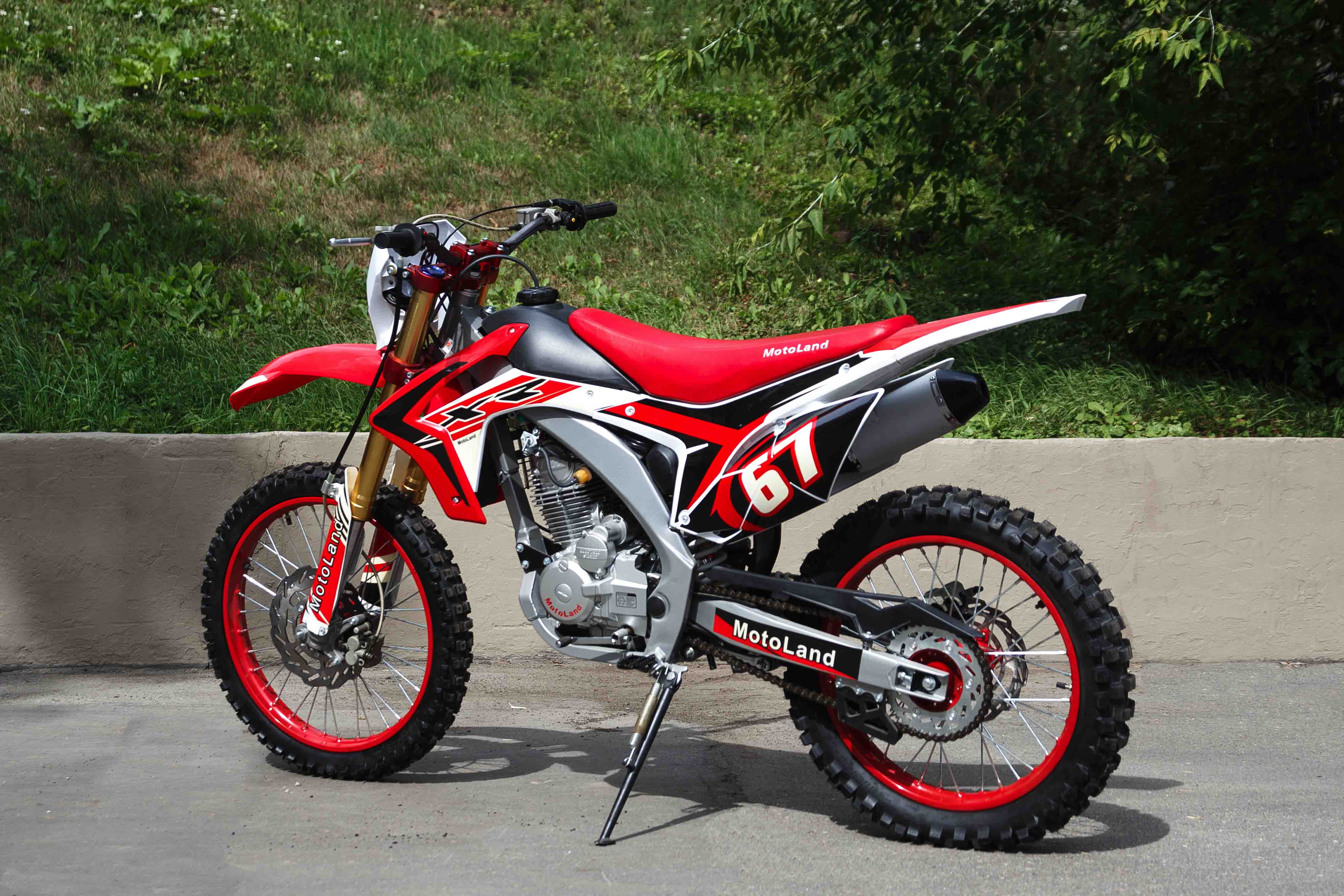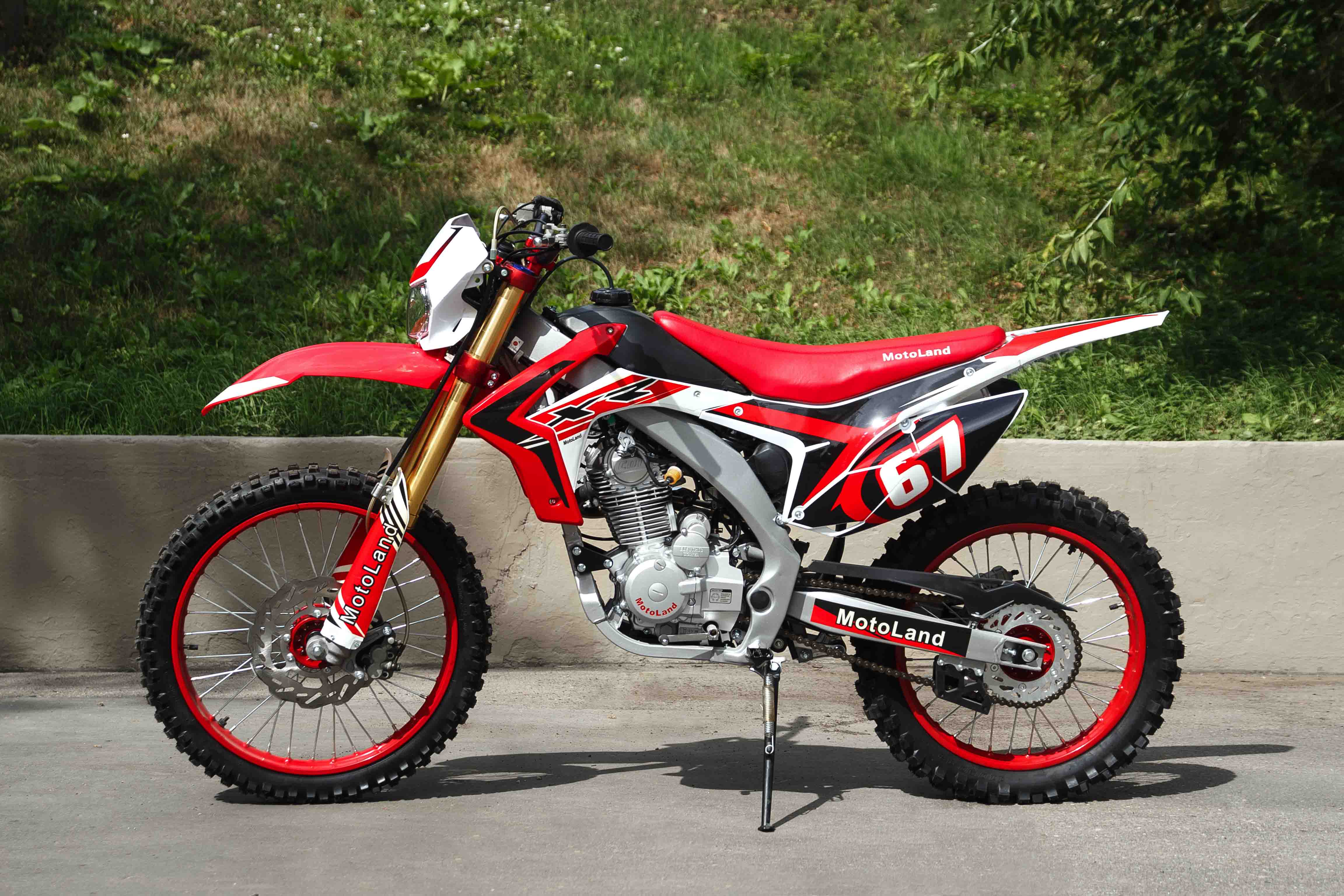 Купить Motoland 250 XR250 в стандартной комплектации будет неплохим решением для всех, кому нужен недорогой кроссовый мотоцикл, подходящий для езды по бездорожью, без выполнения прыжков и базовых трюков. Хорошее качество сборки и доступные цены на комплектующие позволяют поддерживать технику в исправном состоянии без больших затрат при любой интенсивности эксплуатации. Масса мотоцикла составляет порядка 130 кг. Габариты довольно большие – длина составляет 2000 мм., а высота по седлу – 920 мм., ширина руля- 830 мм. поэтому он отлично подойдет для тех, кто имеет рост от 175 см и выше.