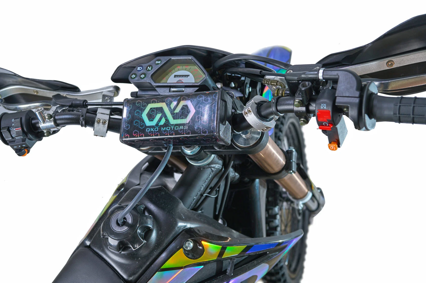 Важная часть современного эндуро мотоцикла - усиленный руль переменного сечения Мотоцикл укомплектован панелью приборов..