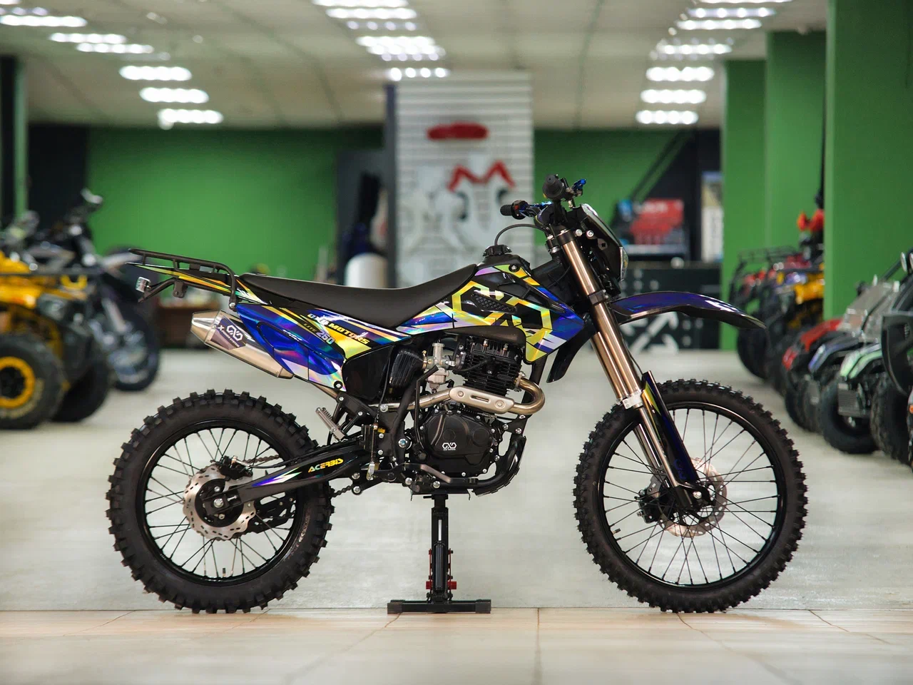 Размер передней покрышки: 80/100-21. Размер задней покрышки: 120/100-18. Они прекрасно себя ведут по песку и грязи, что позволяет райдеру отлично показать себя на пересеченной местности.