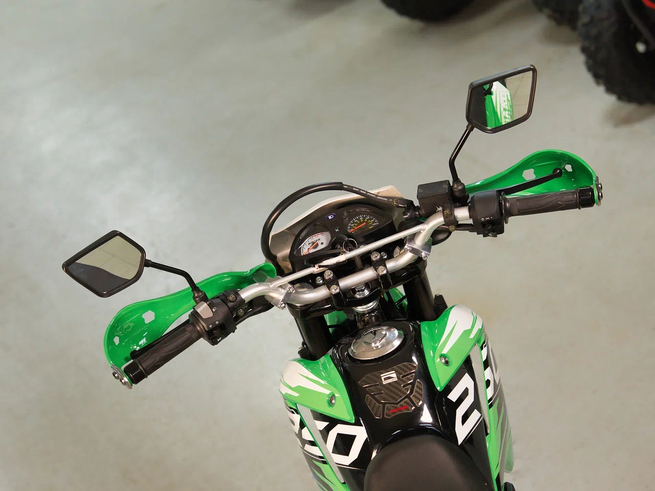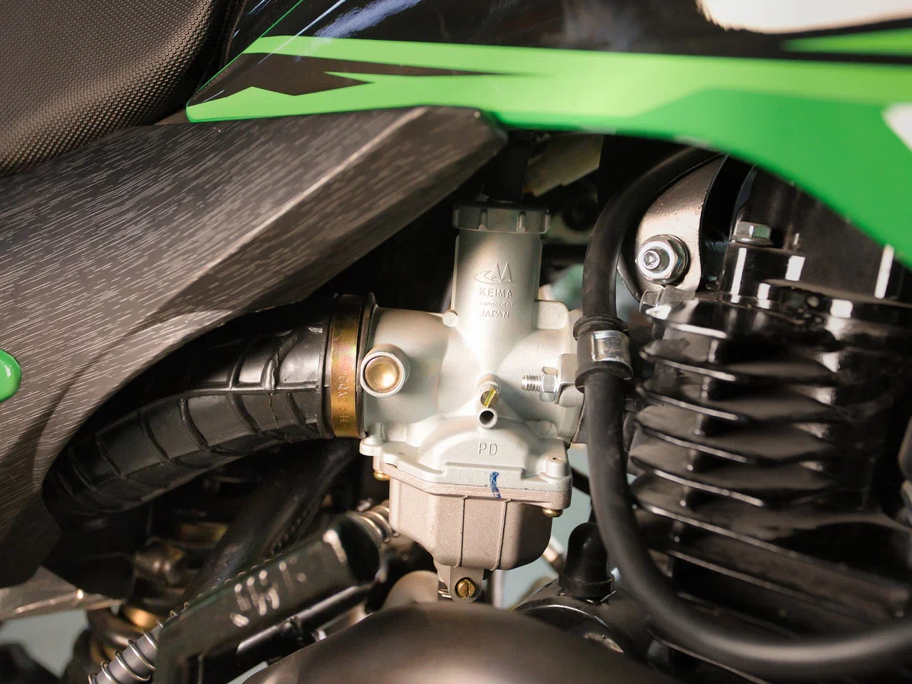 Запуск двигателя может осуществляться как с помощью электростартера, так и с помощью кик-стартера. Охлаждение двигателя – воздушное, расход составляет всего 3 л/100 км. Коробка передач имеет пять скоростей вперед. Объем бака 10 л, этого хватит что бы преодолеть большое расстояние.