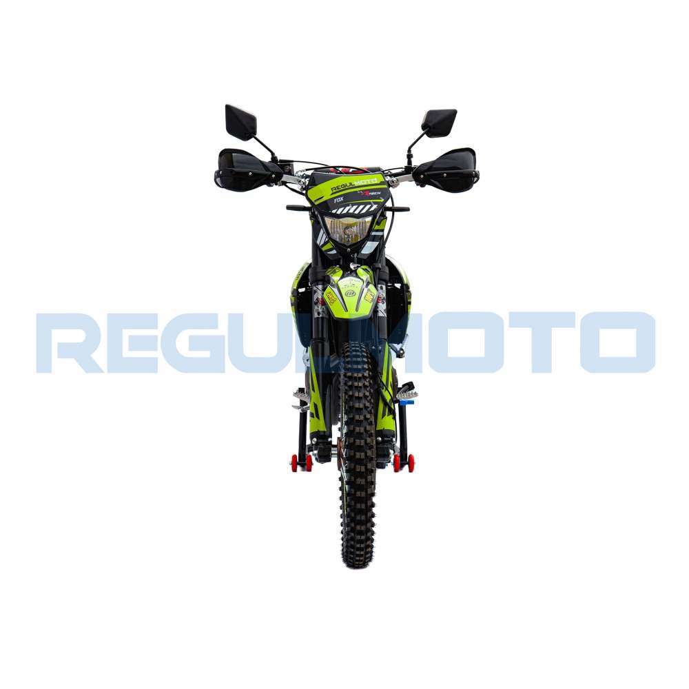 Regulmoto ZR 250 PR также привлекает внимание отличными внешними данными: мотоцикл комплектуется крепким и гибким пластиком с ярким дизайном, выполненным в узнаваемой стилистике популярной модели известного производителя.