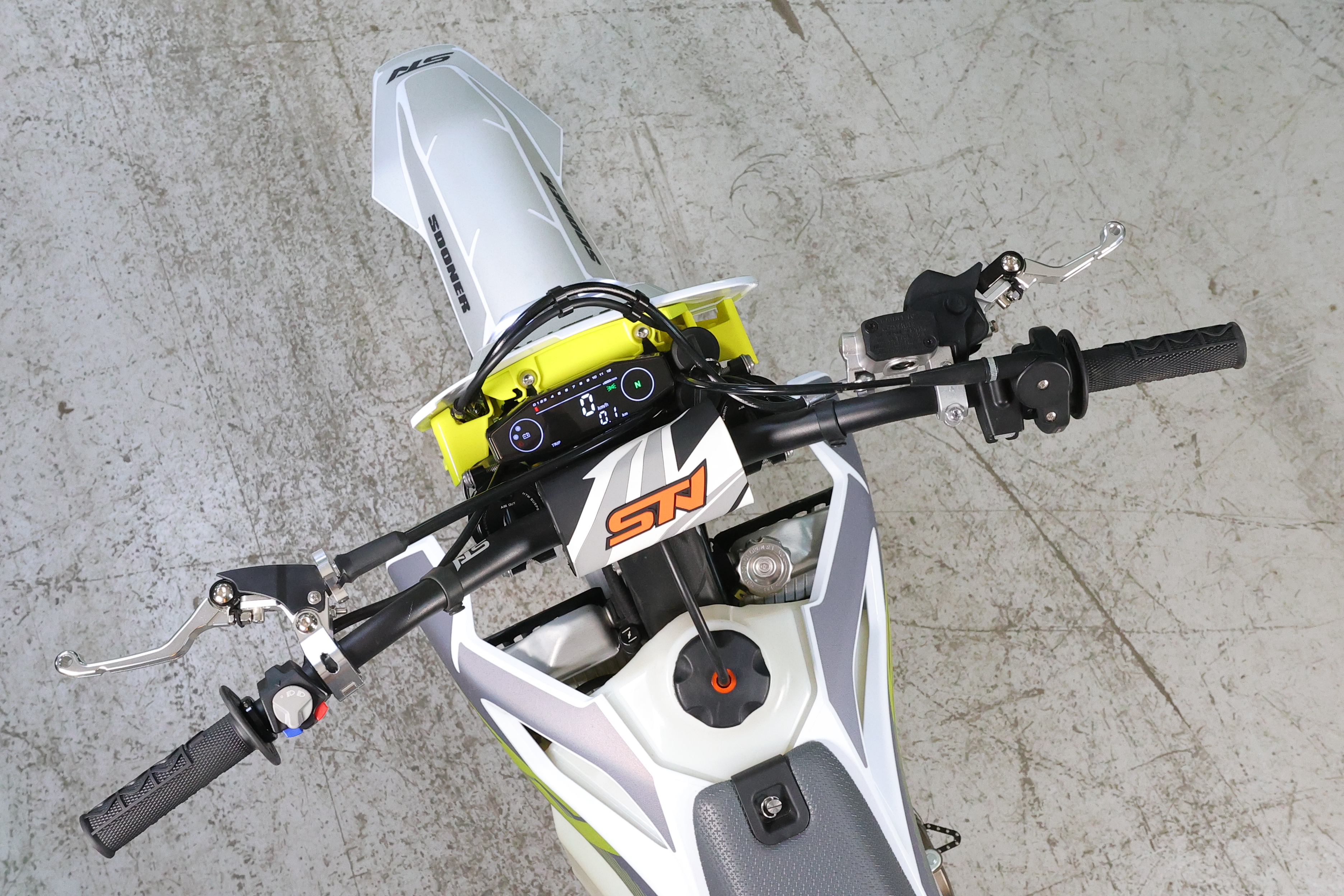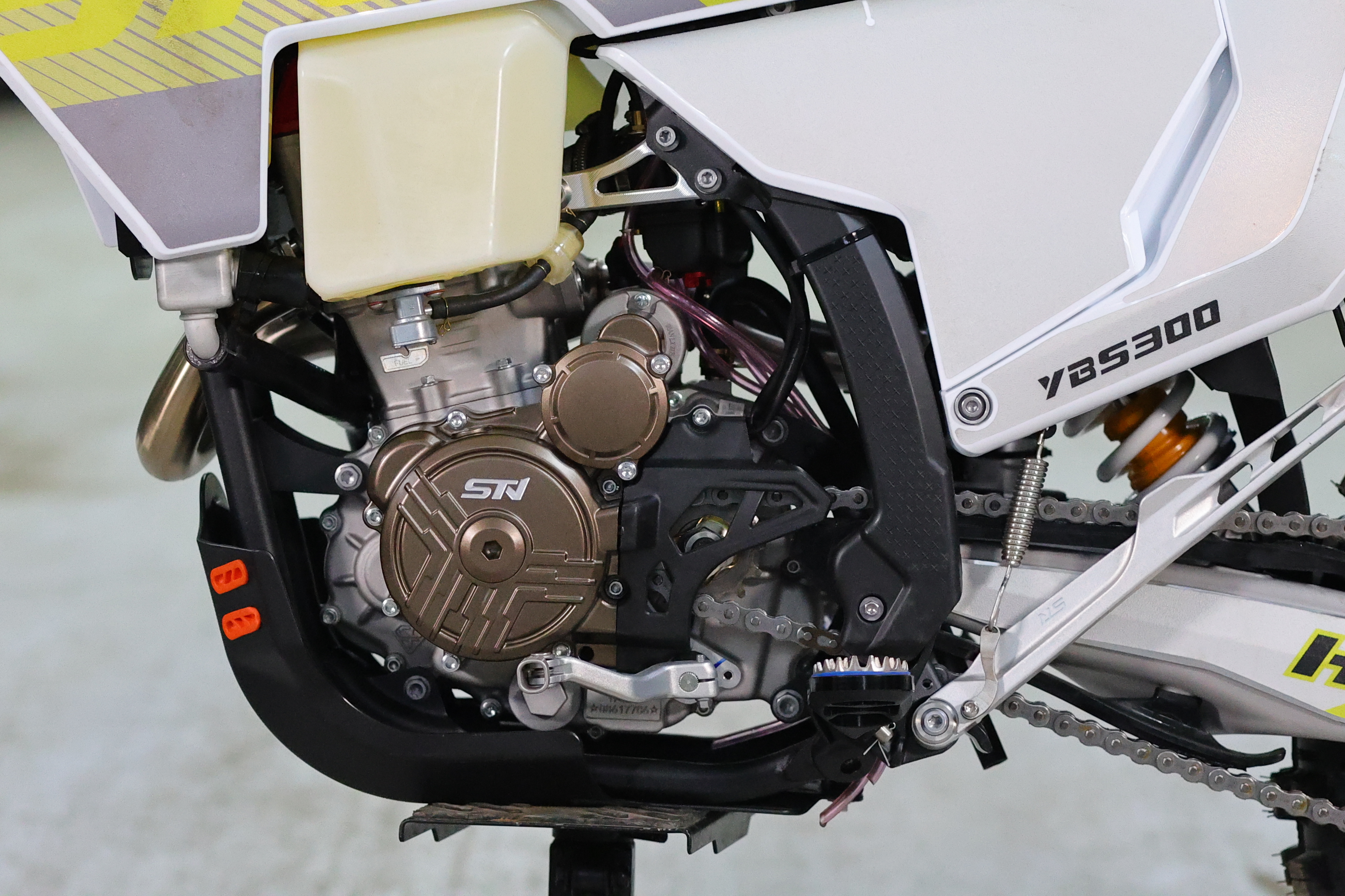 STN H9 YBS300 PRO имеет богатое оснащение - приборная панель последнего поколения, грипсы lock-on, пульты в стиле КТМ24, рычаги "неломайки", ручка газа Nibbi. Рулевая траверса фрезерованная x-trig.