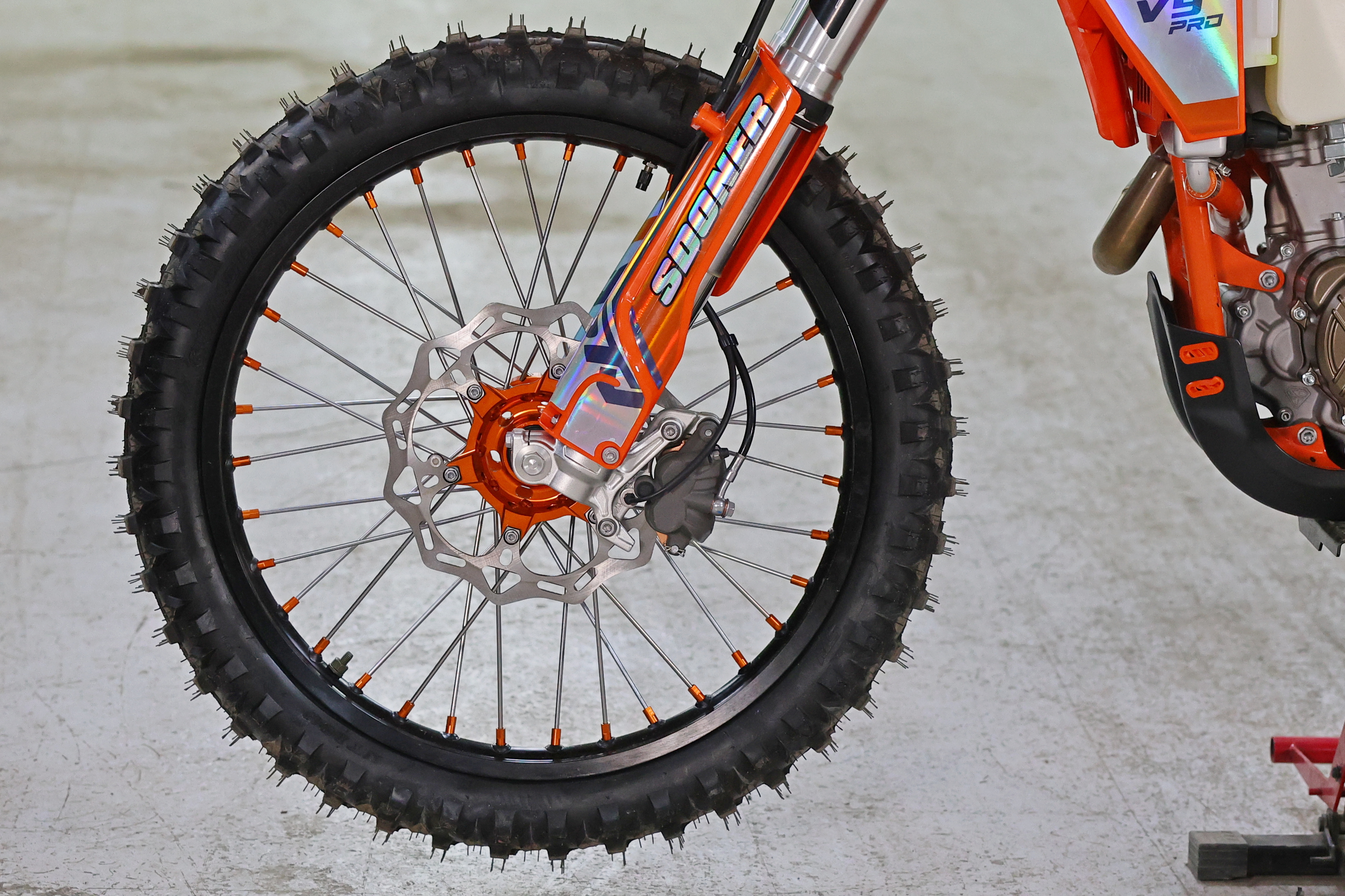 Подвеска мотоцикла полностью регулируемая бренда HTW. Спереди вилка с пером 48мм, картридж открытого. Сзади амортизатор с системой PDS (стоит отметить, что мотоцикл без линка прогрессии соответственно).