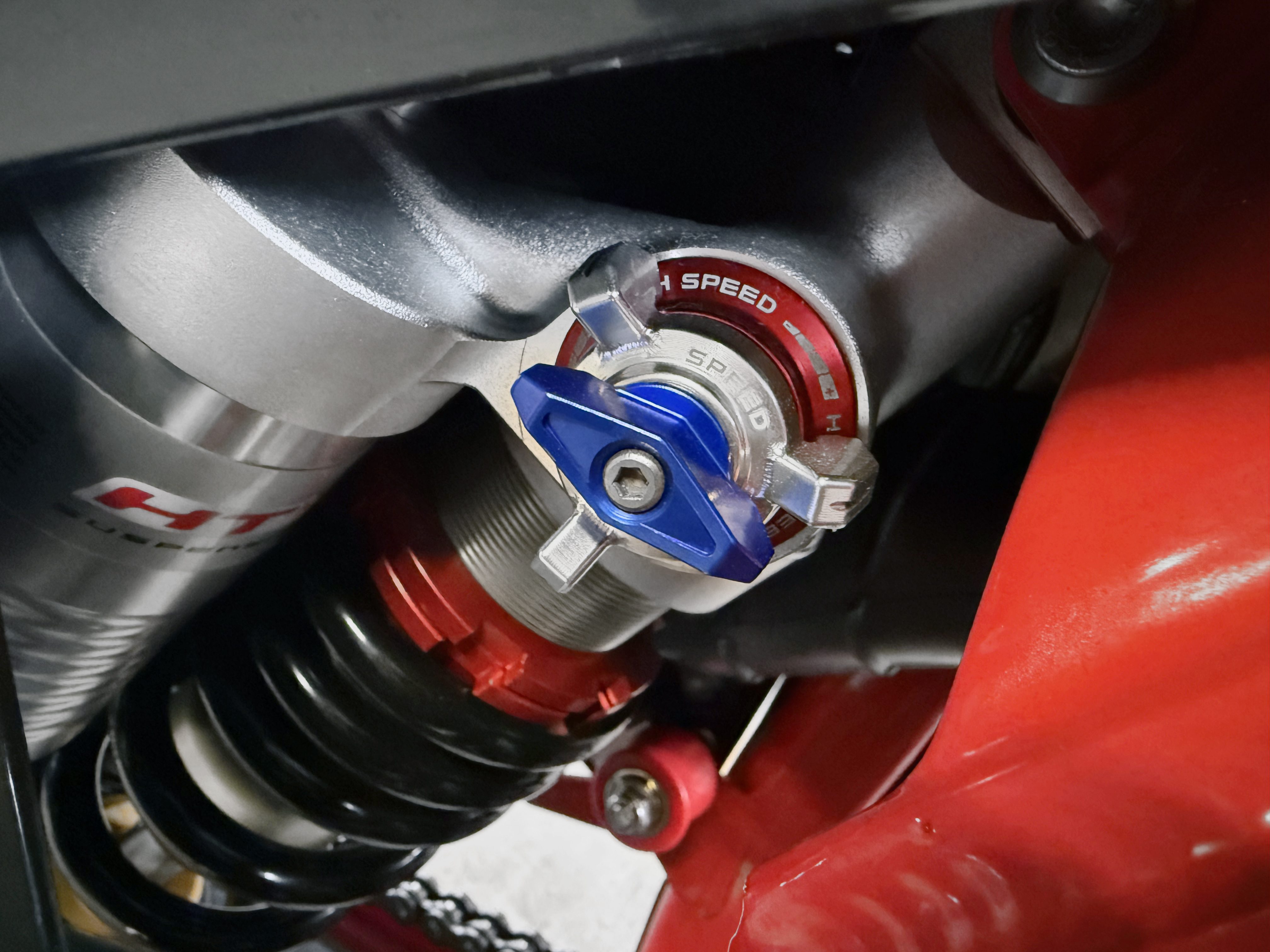 Подвеска мотоцикла полностью регулируемая бренда HTW. Спереди вилка с пером 48мм, картридж открытого. Сзади амортизатор с системой PDS (стоит отметить, что мотоцикл без линка прогрессии соответственно).