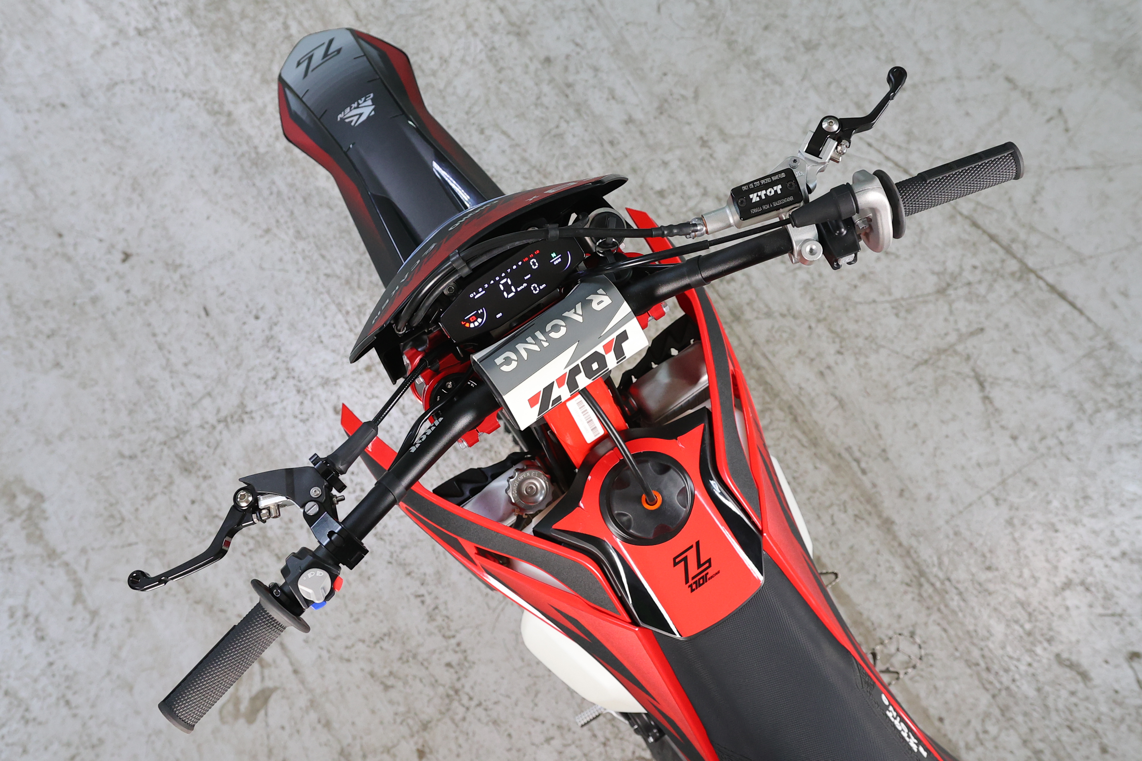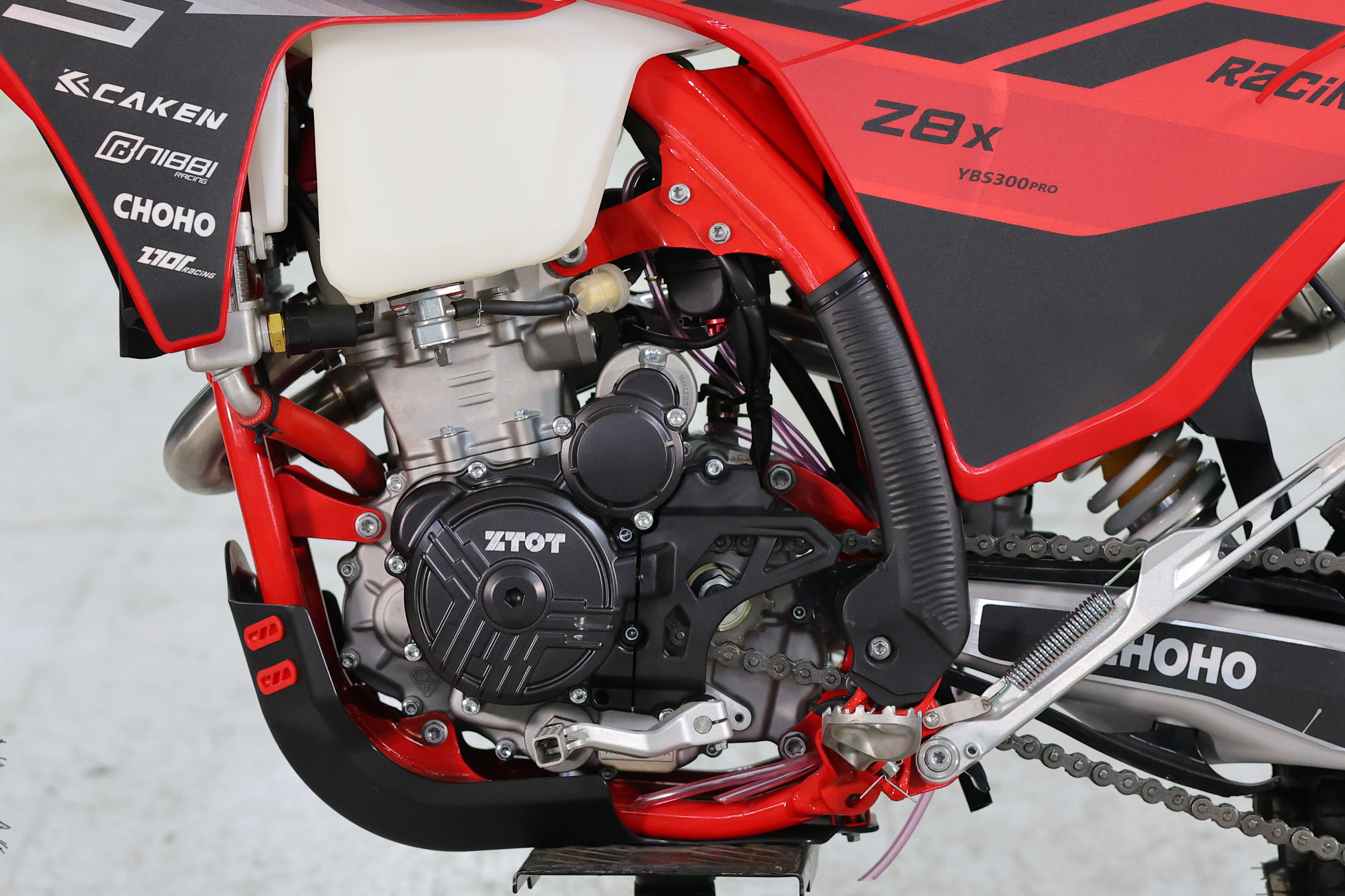 ZTOT Z8 X YBS300 PRO оснащен приборной панелью последнего поколения, грипсами lock-on, пультом в стиле КТМ24, рычагами "неломайками. Рулевая траверса фрезерованная x-trig.