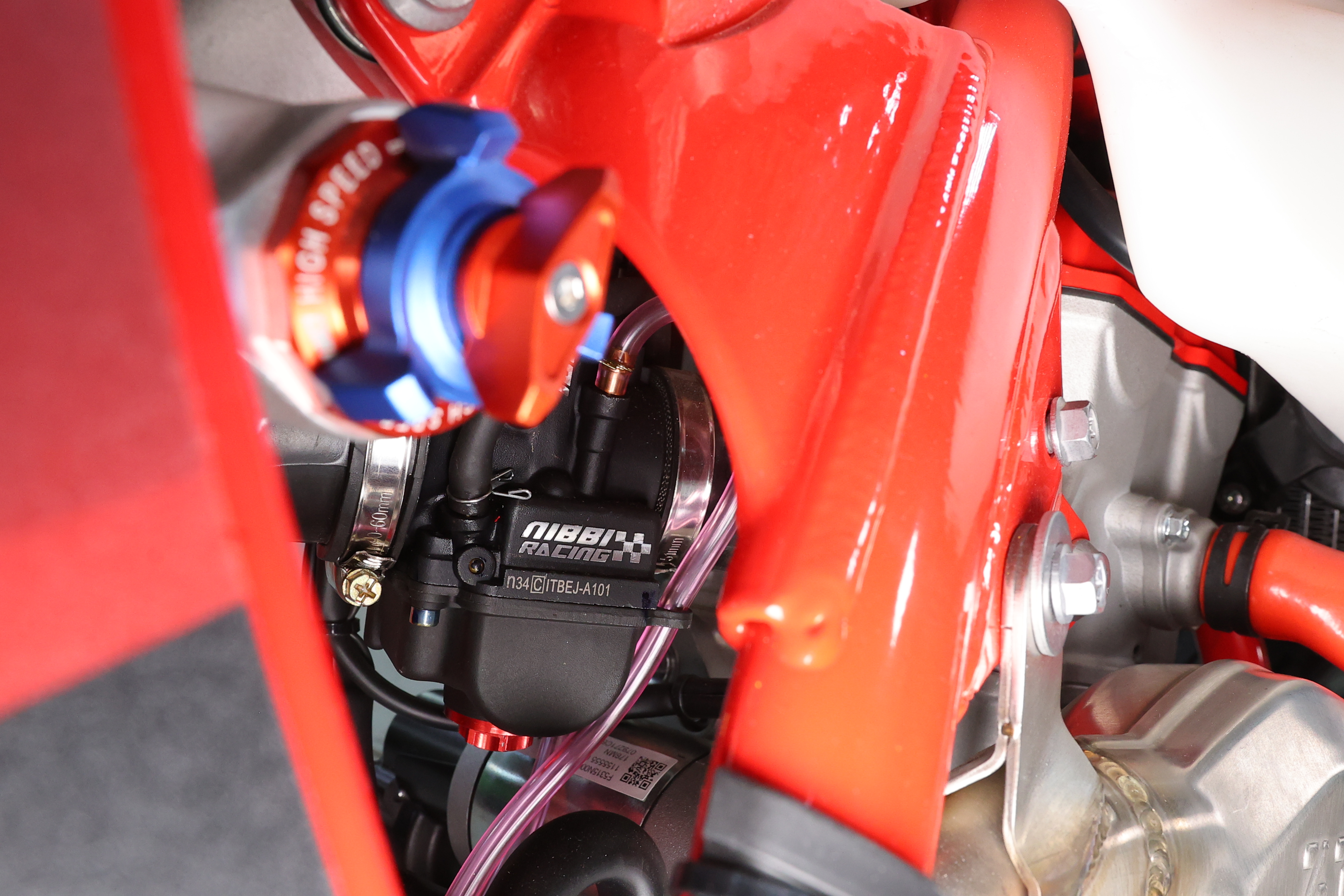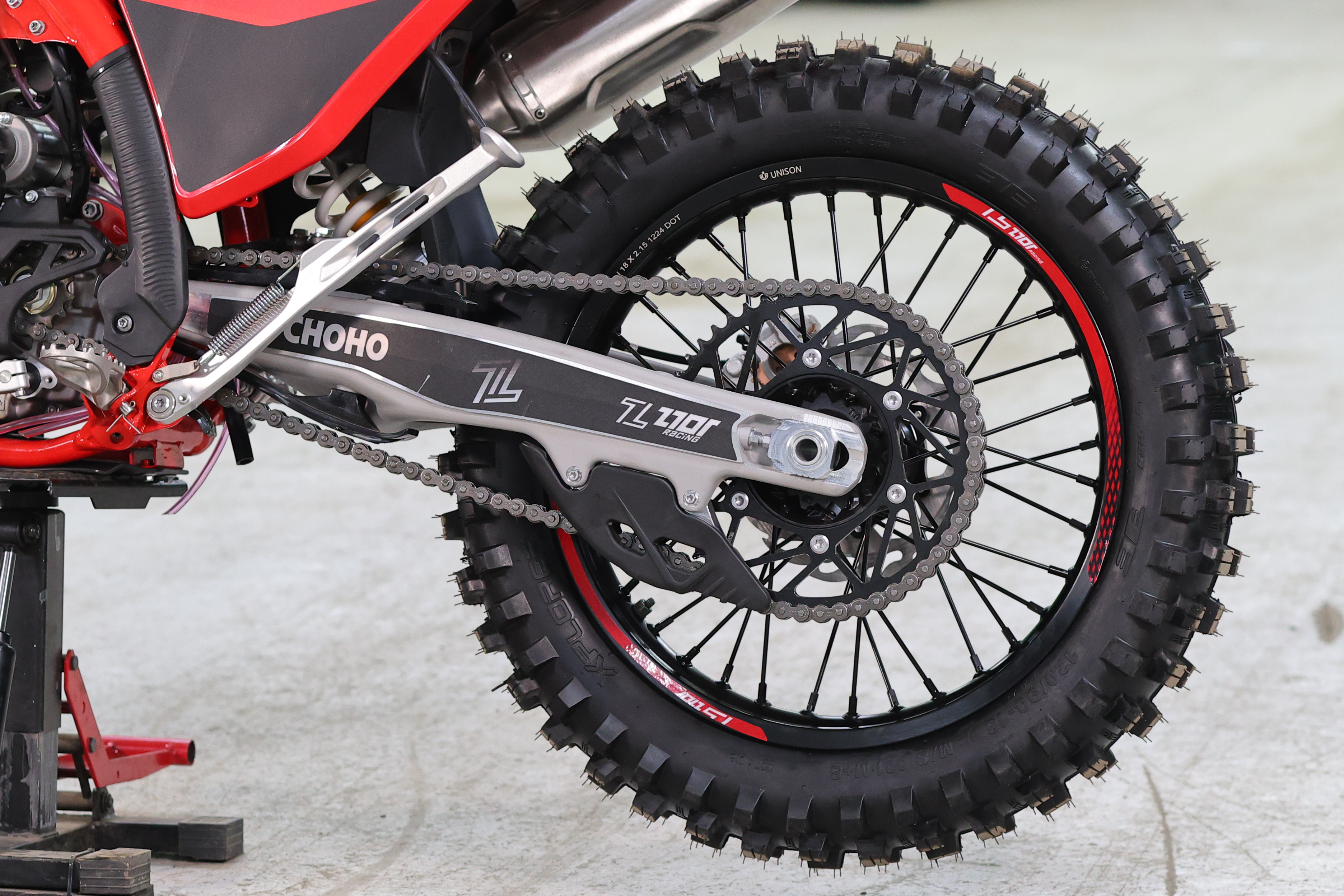 Данная модель построена на раме К10 в стиле КТМ24, облачена в пластик Gas Gas. Колеса на крепких алюминиевых ободах Unison, толстых спицах и хорошей мягкой резине. Передние и задние ступицы фрезерованные, ведомая звезда также фрезерованная алюминиевая.
