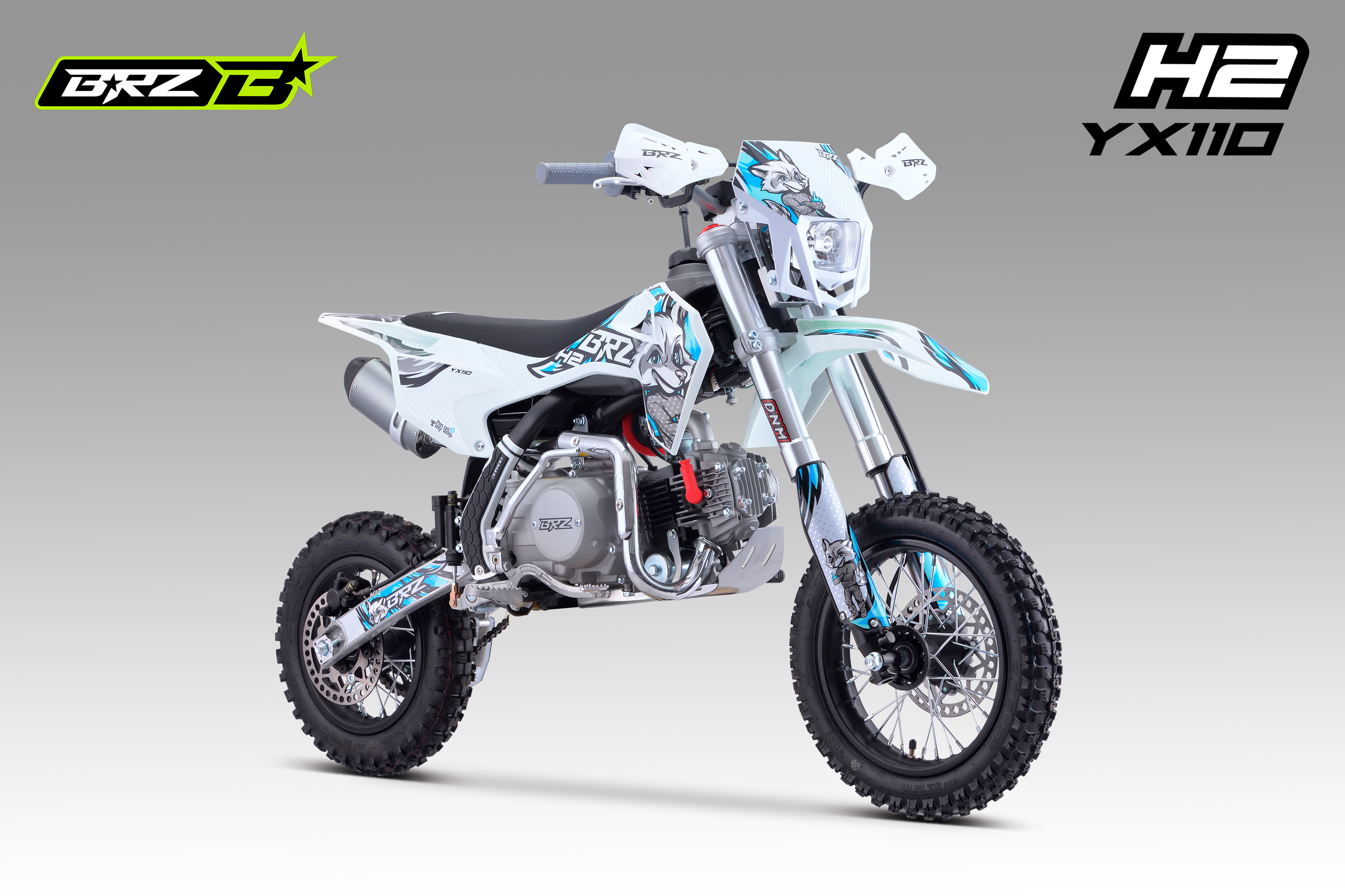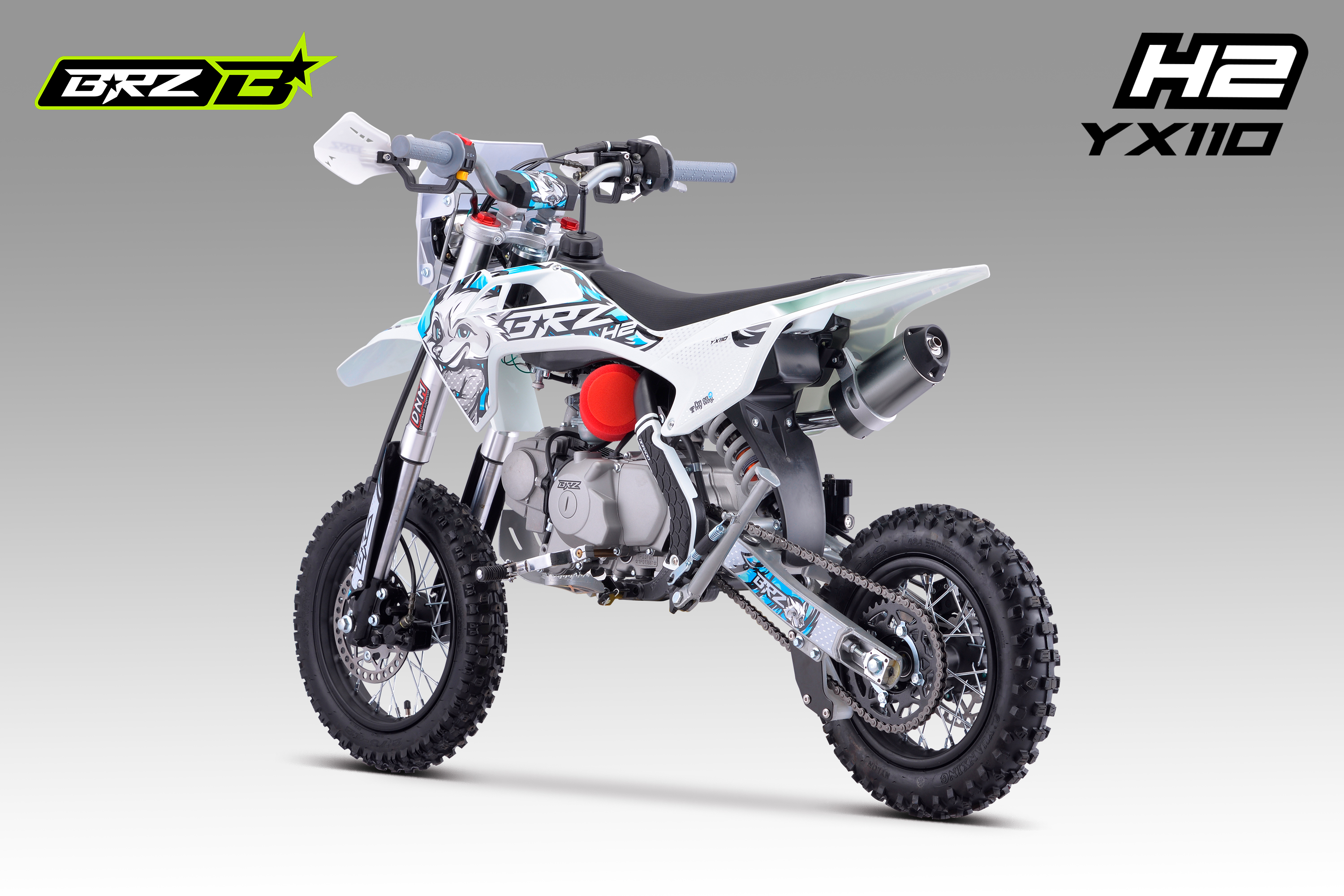 Питбайк BRZ H2 YX110 на полу-автоматической N-1-2-3-4 КПП с электростартером для детей и подростков 8-12 лет.