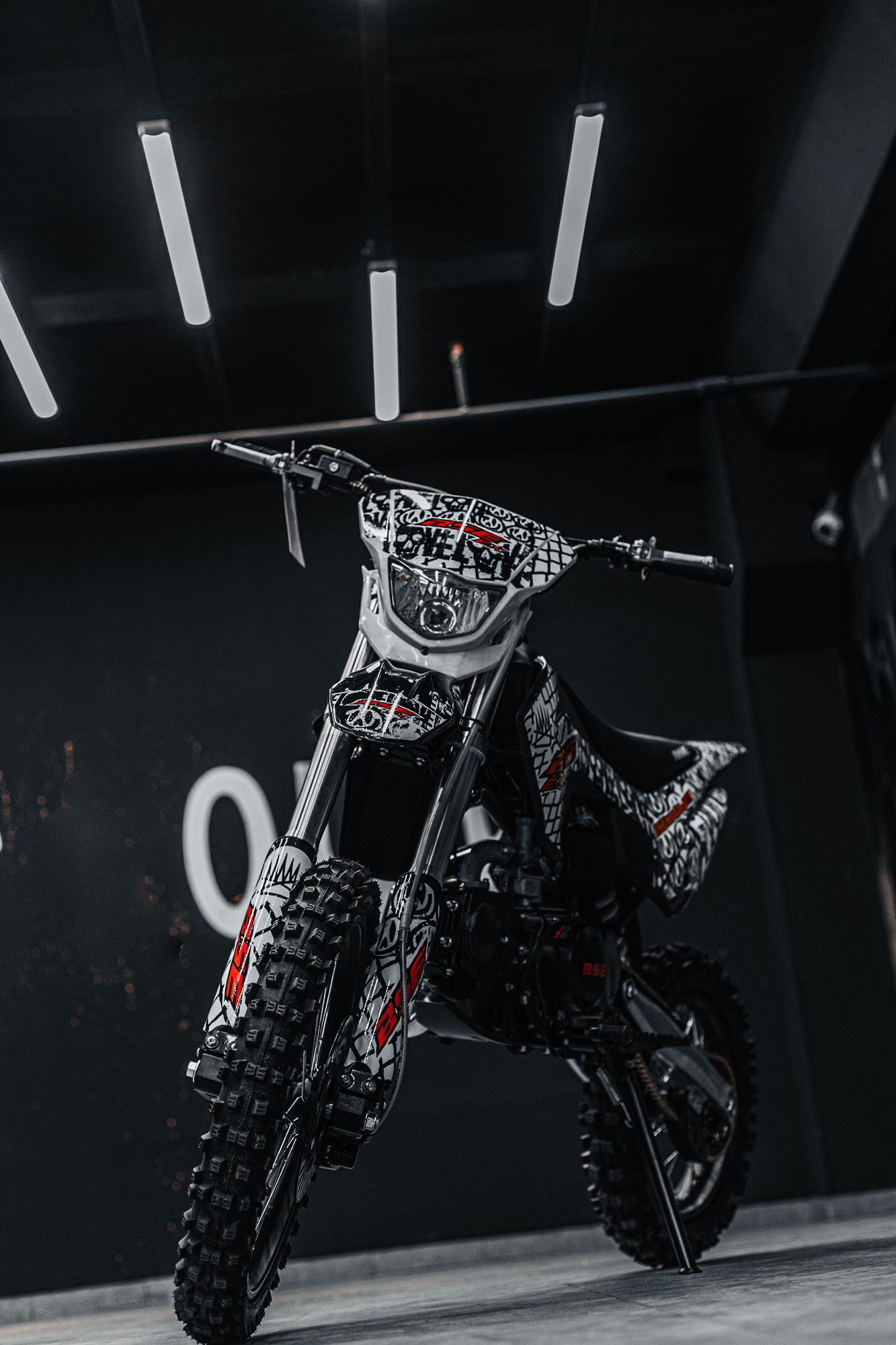 Дизайн питбайка также заслуживает внимания. Доступные цветовые решения (белый/красный) придают ему спортивный и агрессивный вид, который подчеркивает его способности к скоростным и динамичным поездкам.