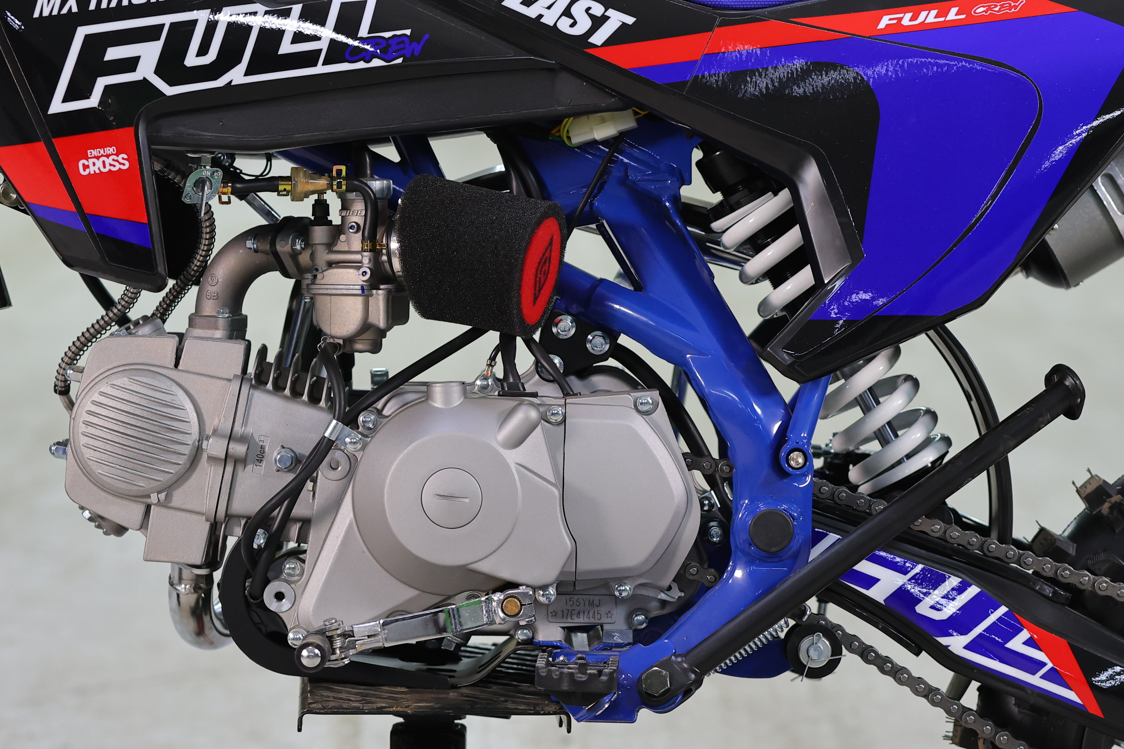 Питбайк FullCrew Big Beast 150cc — это надежный и мощный байк, созданный для ценителей динамики и уверенности на трассе. Его сердцем является 150-кубовый четырехтактный двигатель мощностью 12 л.с., обеспечивающий плавность хода и стабильную работу. Эффективное распределение топлива гарантирует карбюратор Mikuni VM22, а запуск двигателя максимально упрощен благодаря наличию электрического стартера.