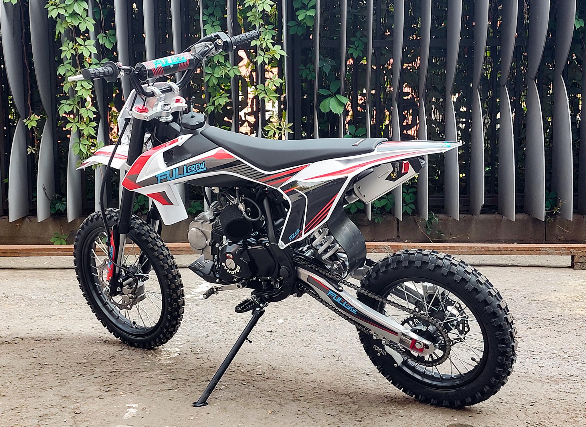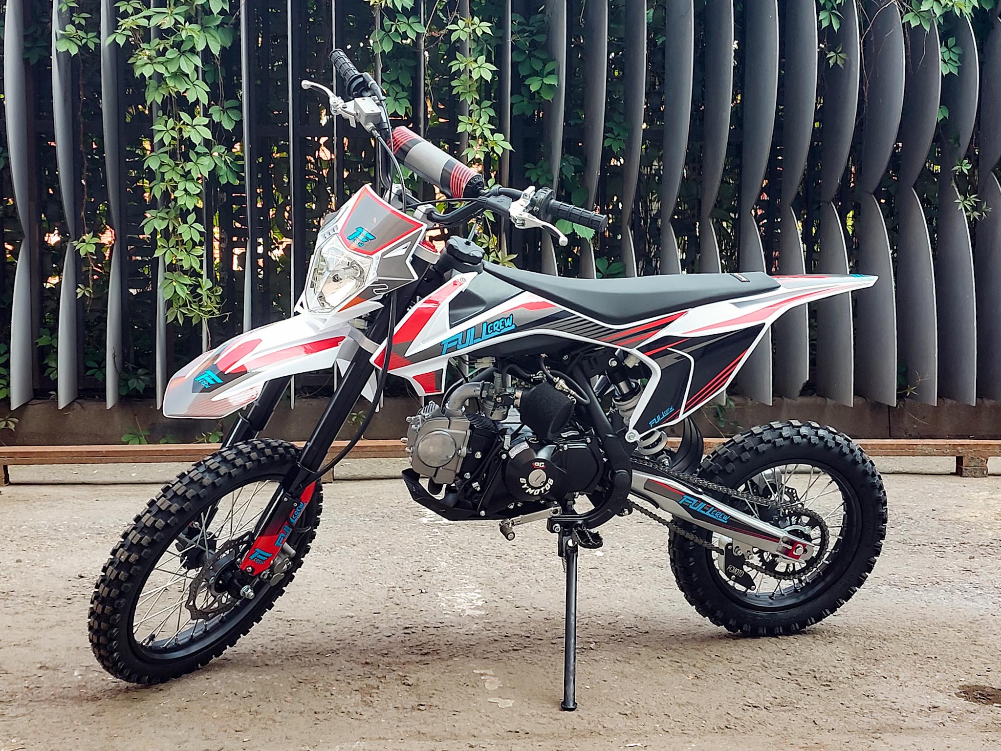Питбайк Full Crew FC125e отлично подходит для пробующих мотоспорт – резвый мотор на 125 кубов с 9 лошадиными силами прекрасно работает с механической коробкой. Охлаждение воздушное – простая конструкция облегчает ремонт и удешевляет обслуживание. Для начинающих эта модель особенно интересна еще и из-за цены – можно основам научиться на нем с перспективой пересесть в дальнейшем на что-то более серьезное.