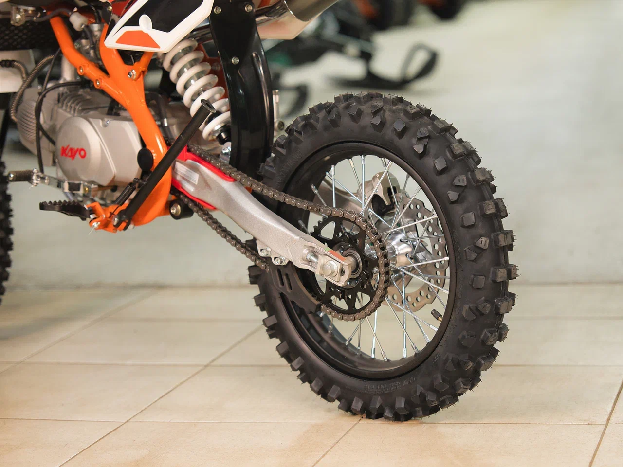 Питбайк KAYO Basic TT140 KRZ – версия для прогрессирующих и хороший старт для тех, кто готов перейти от базовых тренировок к более сложным заездам. Подходит для лёгкого эндуро и оттачивания мастерства.