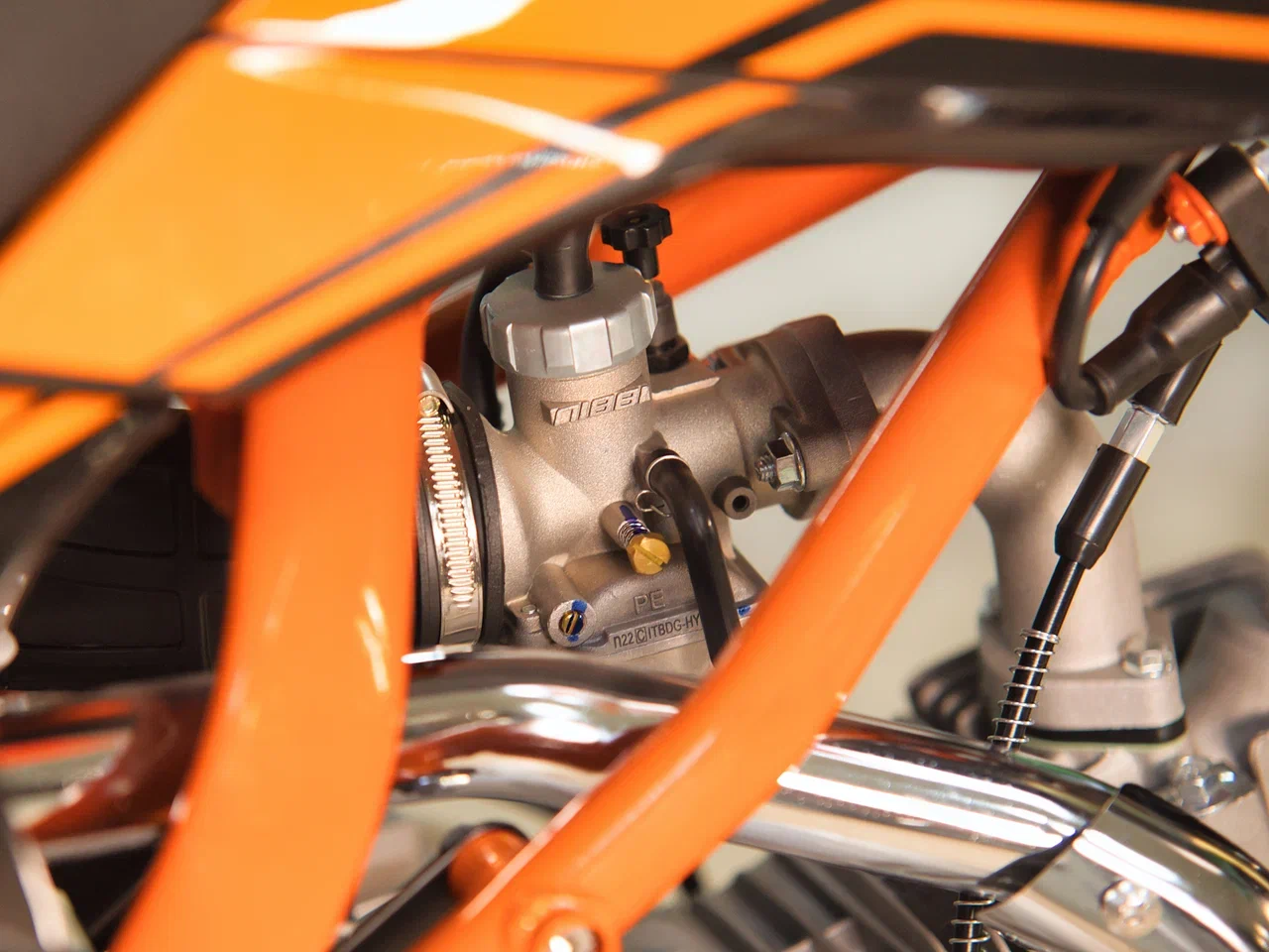 Одноцилиндровый 4-тактный двигатель воздушного охлаждения объёмом 125 см3, выдаёт 9 л.с. Карбюратор NIBBI PE19 обеспечивает бесперебойную работу техники в самых жёстких условиях эксплуатации, простоту и лёгкость в обслуживании, а также неприхотливость к качеству топлива. Питбайк оснащён механической 4-ступенчатой коробкой передач с формулой “N-1-2-3-4”.