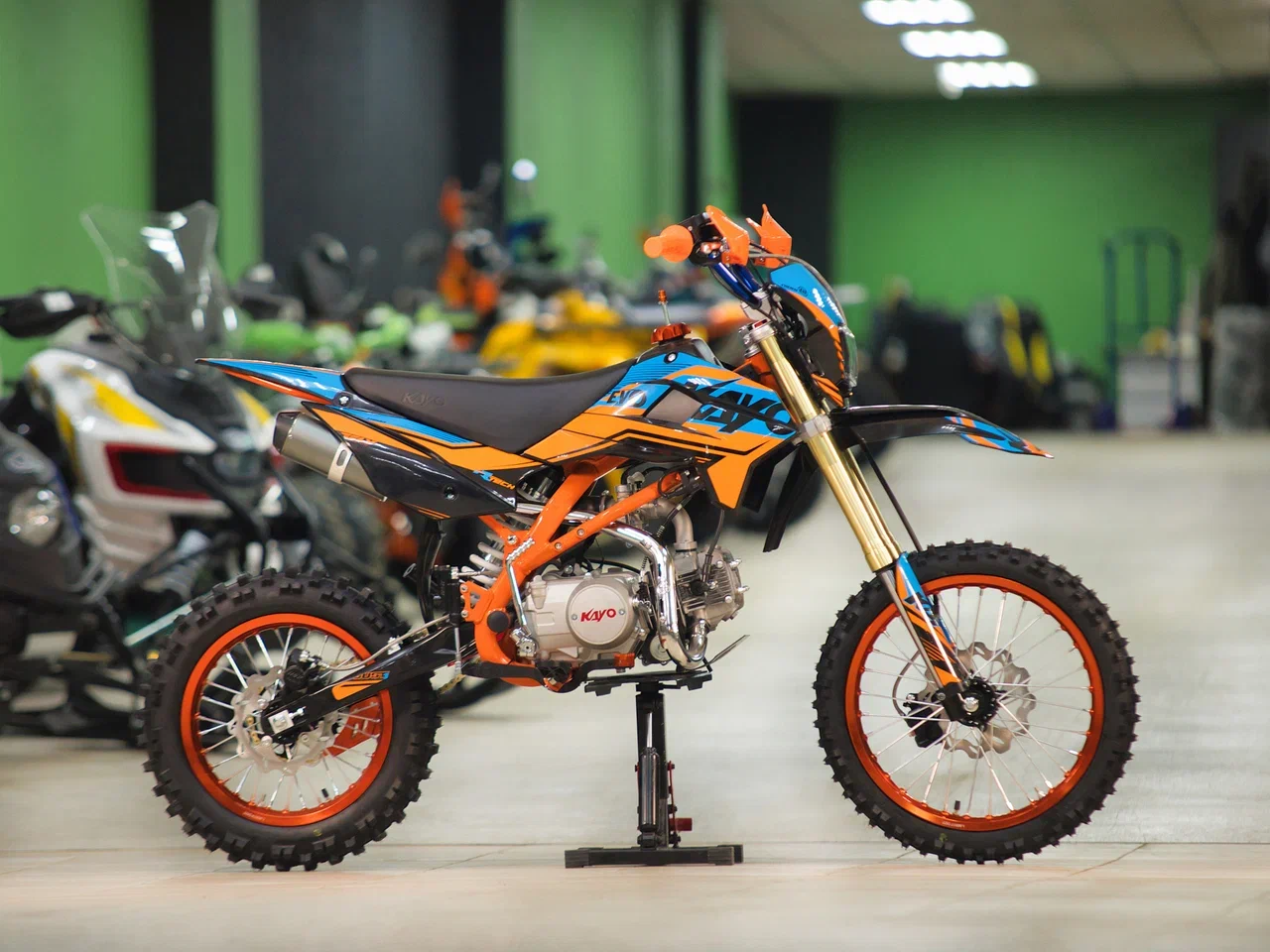 Питбайк KAYO Evolution K125EM KRZ – идеальный снаряд для наработки первого опыта в мотокроссе и эндуро, который можно использовать на лёгких кроссовых трассах и дорогах с различным покрытием. Удобный, простой и надёжный мотоцикл, который полностью оправдывает свою цену.