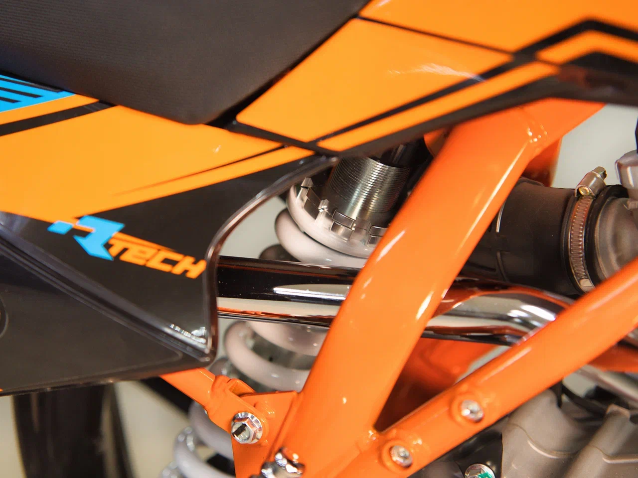 Мотоцикл имеет вес всего 78 кг. Усиленная рама из хром-молибденового сплава и подвеска позволяют эффективно амортизировать удары при езде по неровностям и препятствиям на трассе. Передняя подвеска — телескопическая вилка перевёрнутого типа длиной 770 мм, задняя — моноамортизатор длиной 360 мм. Оба компонента подвески являются нерегулируемыми. Рама и пластик являются собственной разработкой производителя. Мотоцикл оснащён классическими стальными спицованными колёсами диаметром 17 дюймов спереди и 14 дюймов сзади. Эффективное и безопасное замедление с любых скоростей обеспечивают гидравлические дисковые тормоза с лепестковыми дисками.