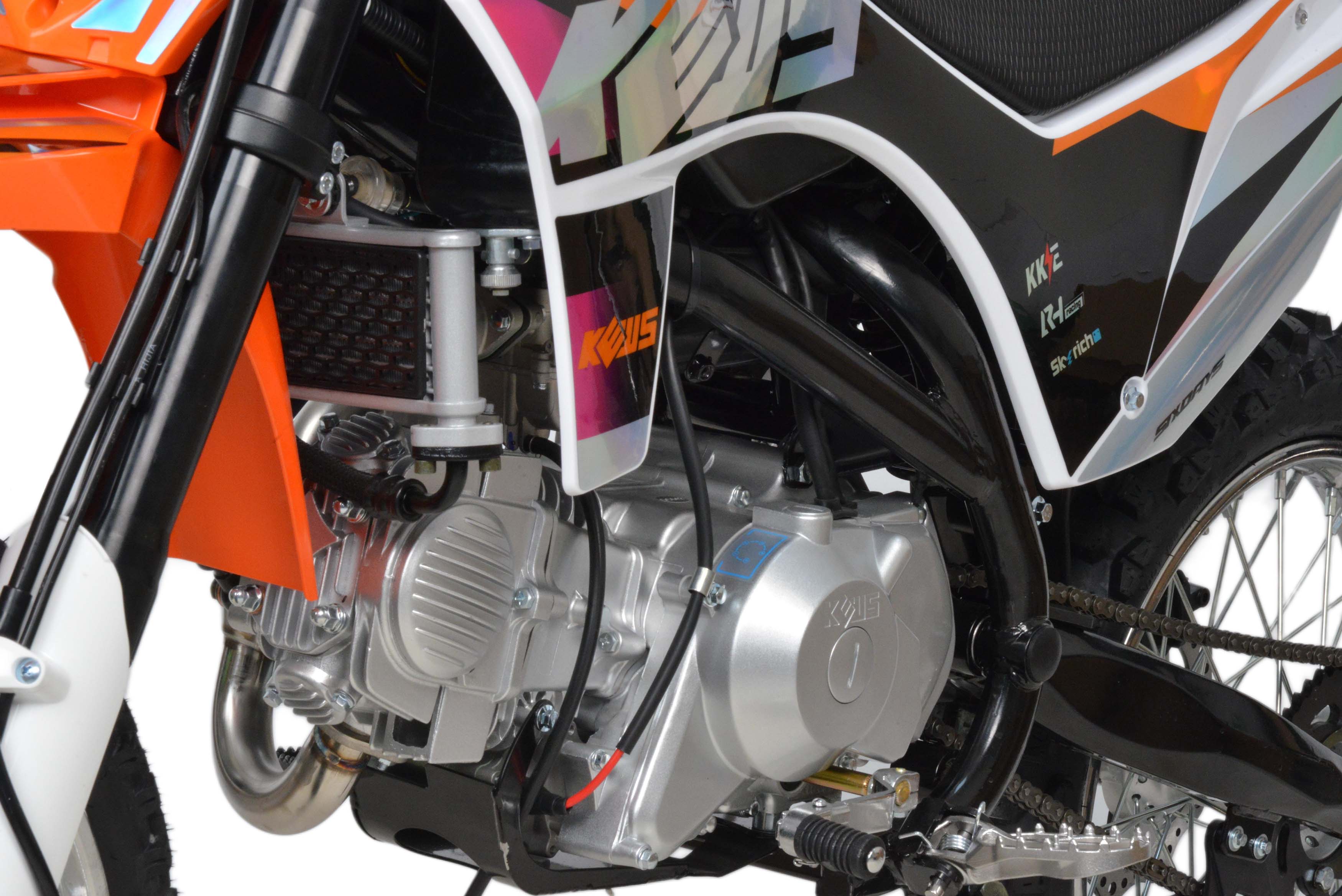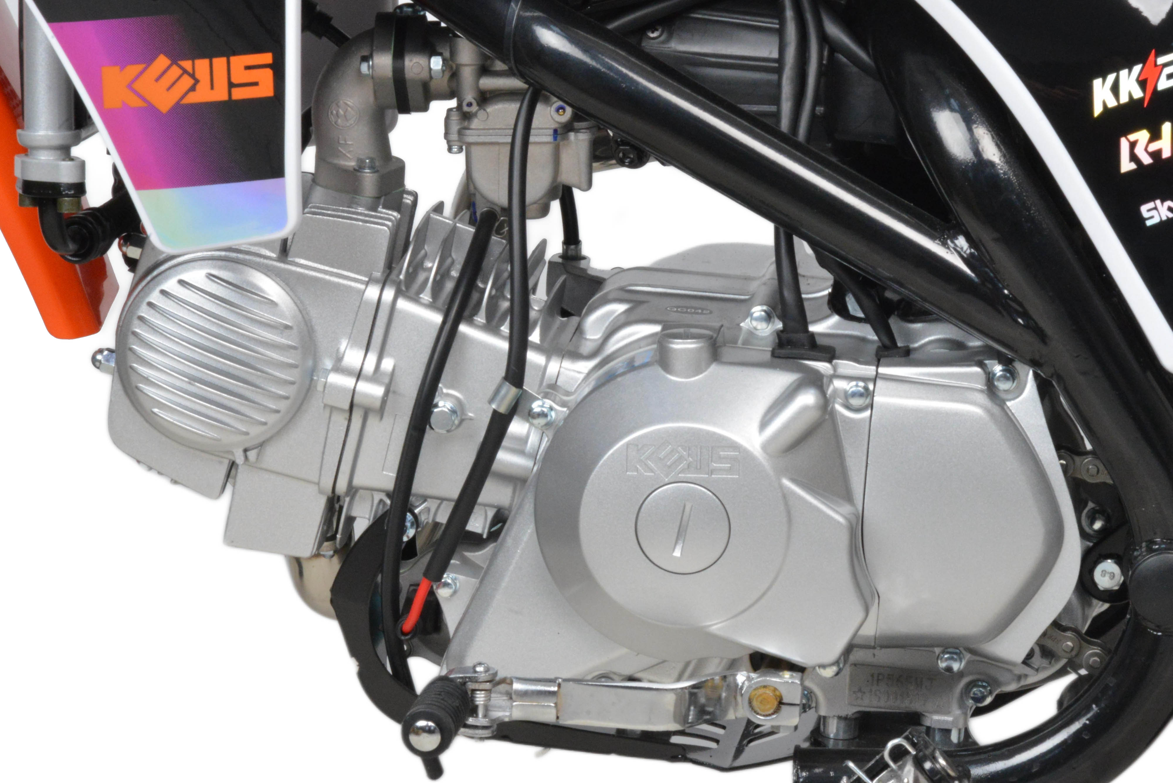 Питбайк Kews K61 140 E 19/16 идеален для поездок по грунтовым дорогам и бездорожью. Хорошо чувствует себя на мягком и среднем грунте, разгоняется до 110 км/ч. Оснащён спортивными траверсами, весит всего 90 кг.