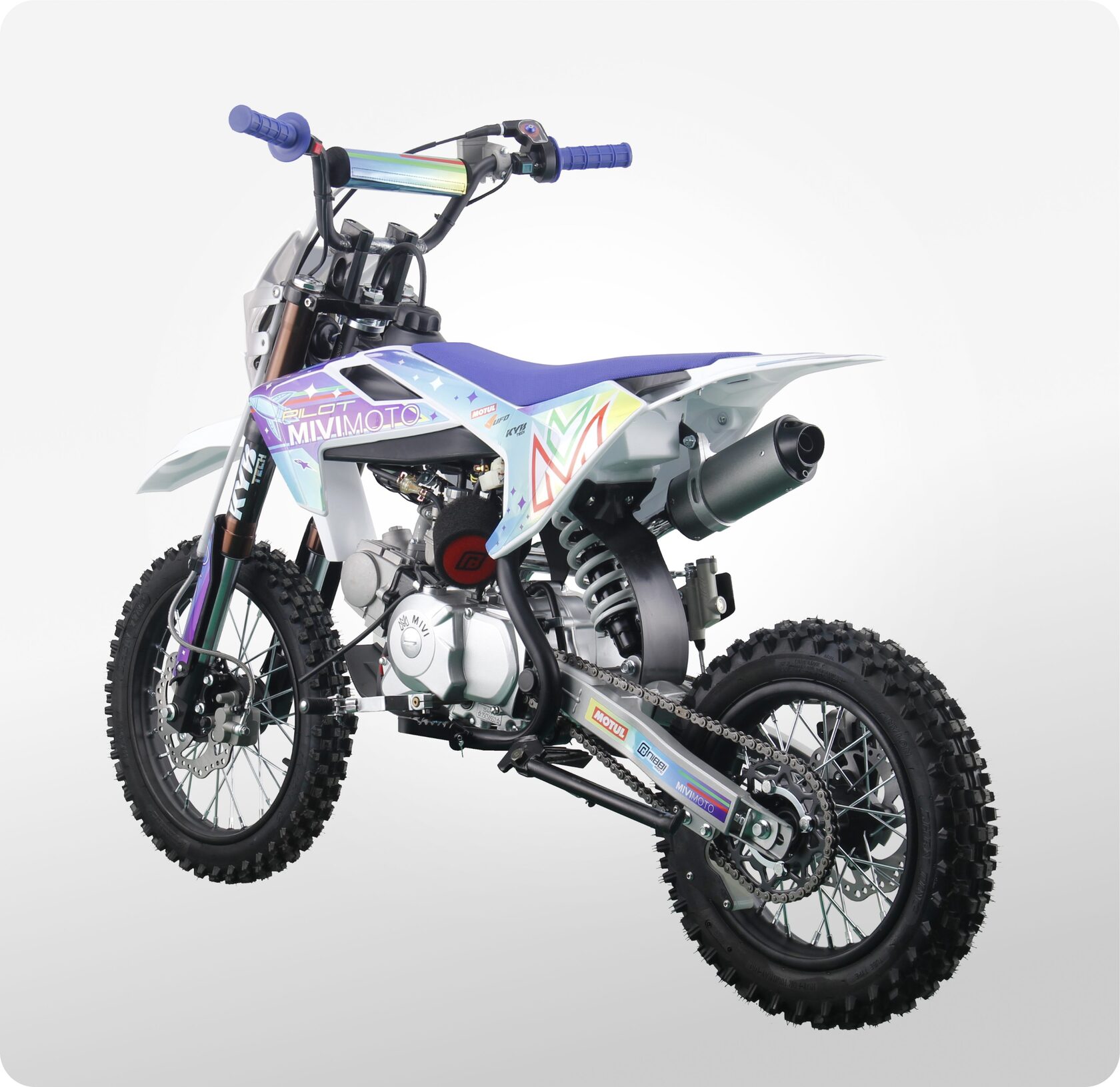MIVIMOTO PILOT 125 — идеальный питбайк для новичков и молодых гонщиков. Легкий, компактный и надежный, он создан для тех, кто делает первые шаги на трассе и стремится развивать свои навыки. Модель сочетает в себе продуманный дизайн, простоту управления и уверенную динамику.