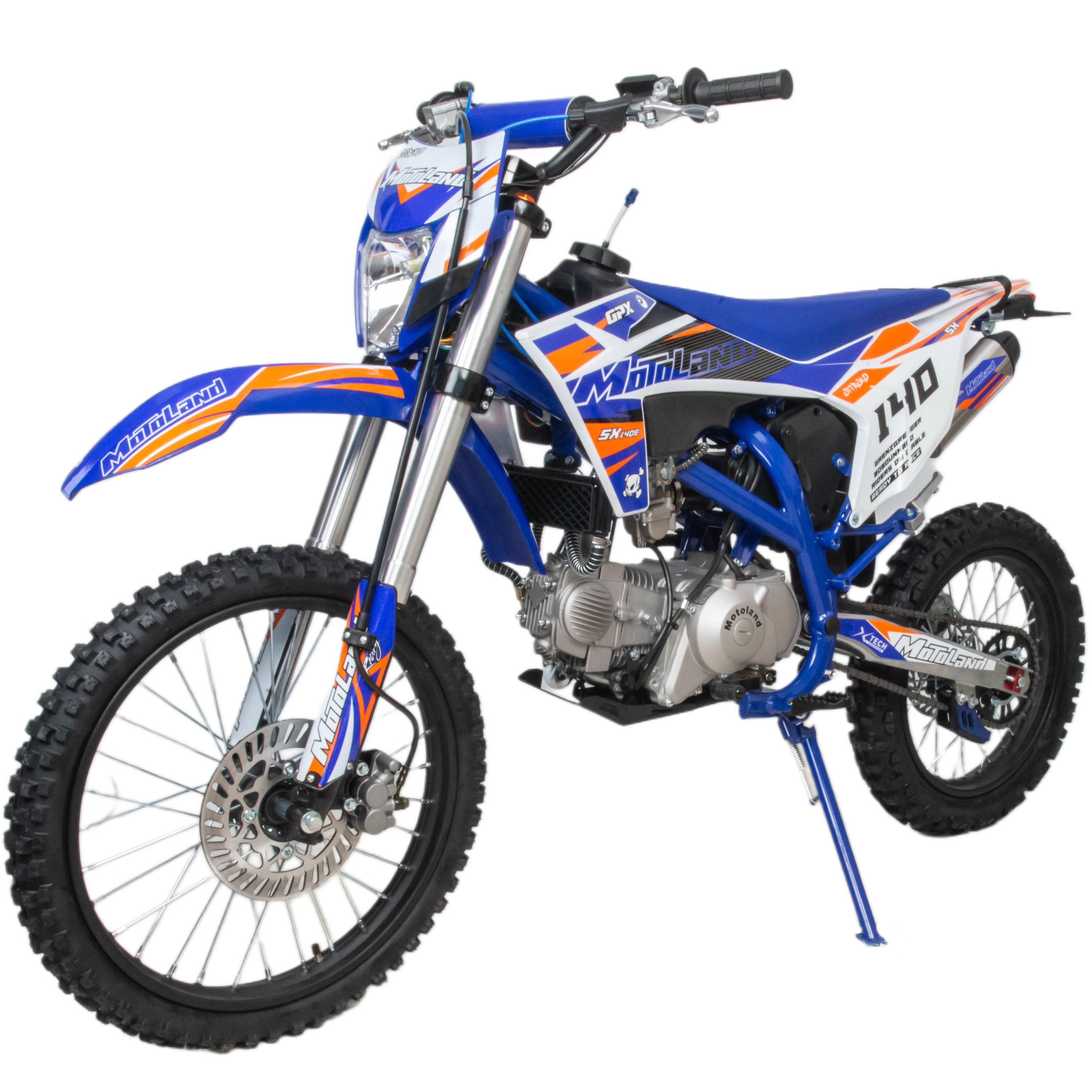 Встречайте долгожданную новинку SX на 140 куб. Питбайк Motoland SX 140 E 19/16 идеален для поездок по грунтовым дорогам и бездорожью. Хорошо чувствует себя на мягком и среднем грунте, разгоняется до 90 км/ч. Оснащён спортивными траверсами и амортизаторами с регулировкой. весит всего 75 кг.