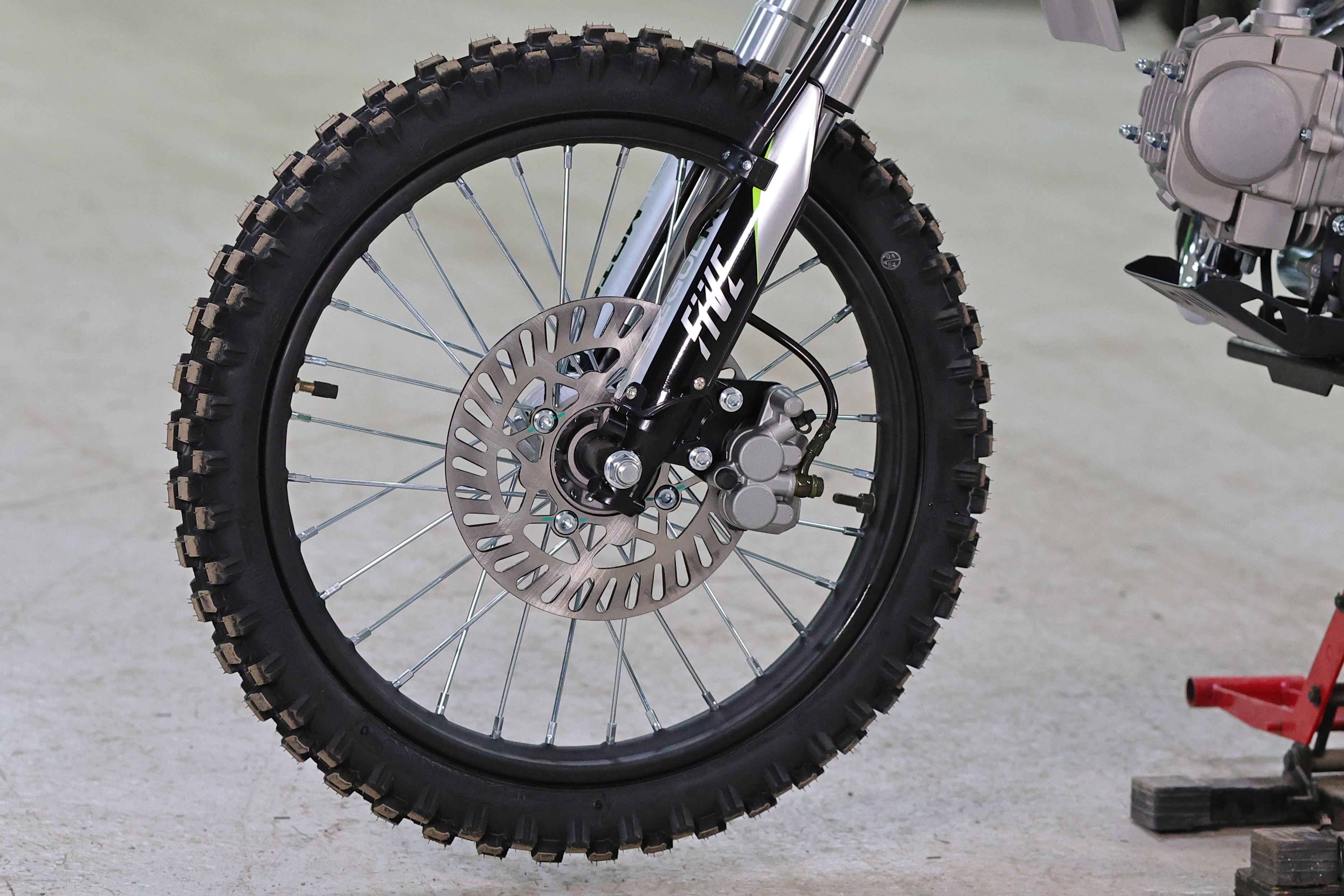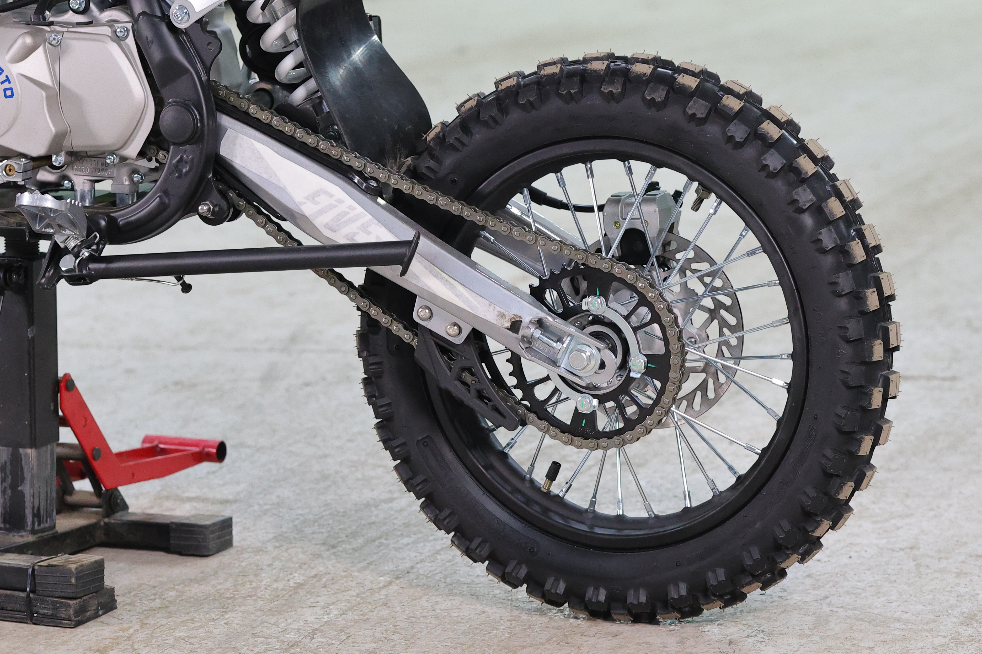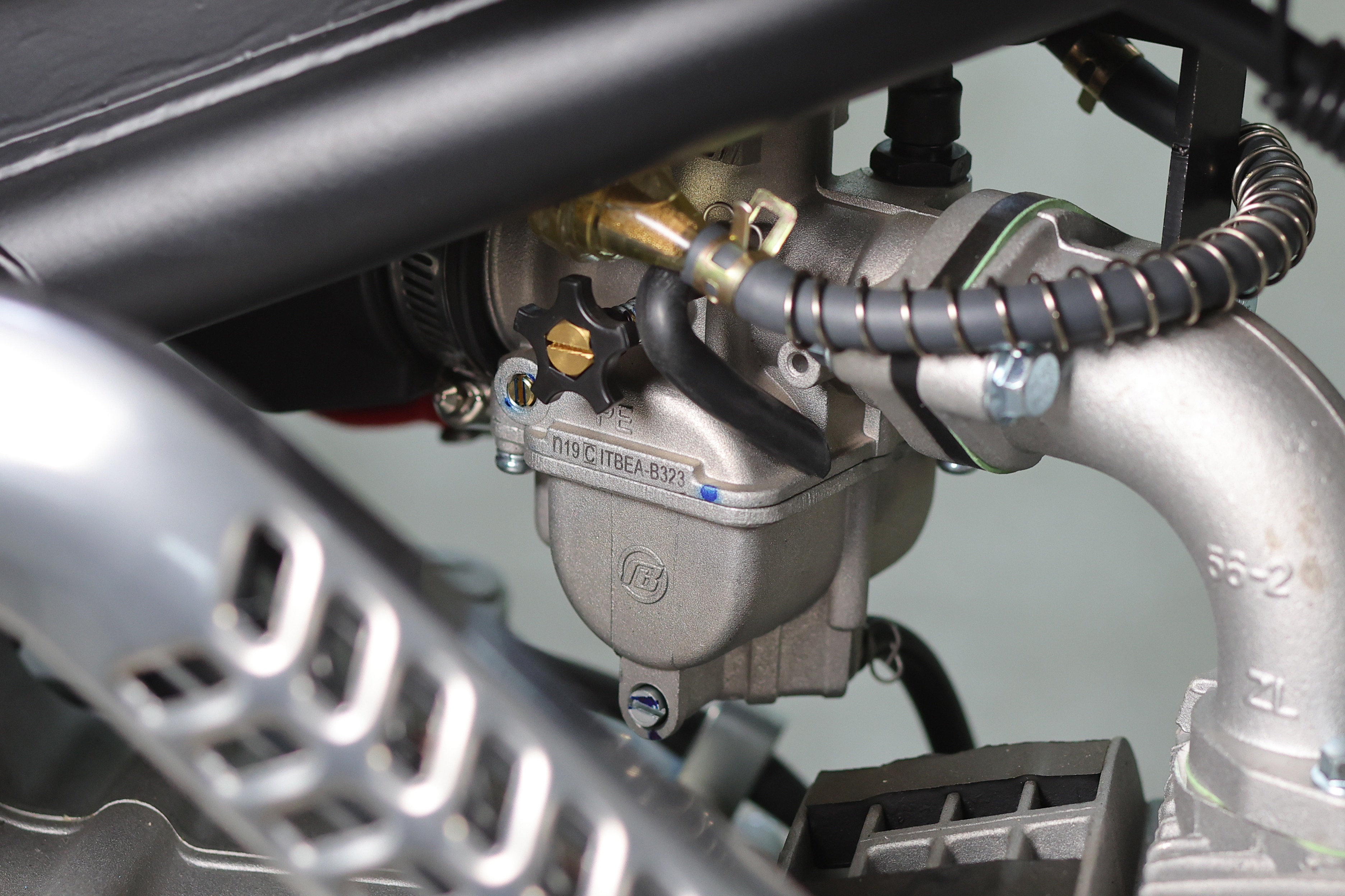 Установлен 125-кубовый 4-тактник YX c 4-х ступенчатой полуавтоматической коробкой передач (передачи переключаются без выжима сцепления) – этот двигатель отлично себя зарекомендовал в качестве надежного и простого силового агрегата. Подготовкой топливной смеси занимается карбюратор Mikuni VM22 . Запуск мотора возможен как при помощи тумблера электростартера, так и привычной лапкой кика.