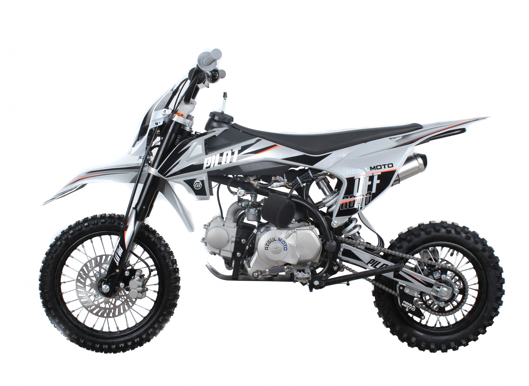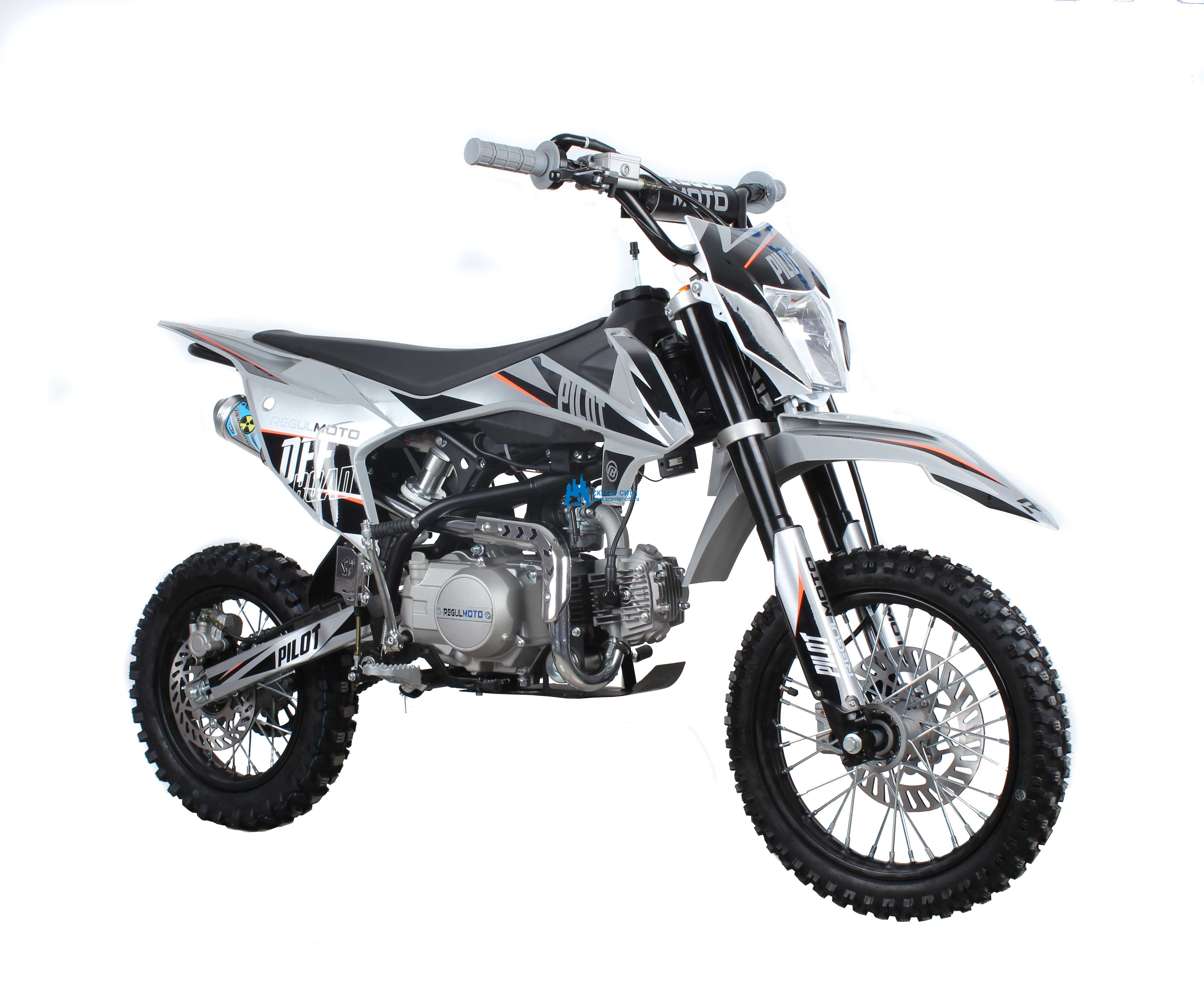 Regulmoto Pilot 110 c электростартером и полуавтоматической коробкой передач – питбайк начального уровня, созданный специалистами Американского мотобренда PitsterPro для юных мотогонщиков.