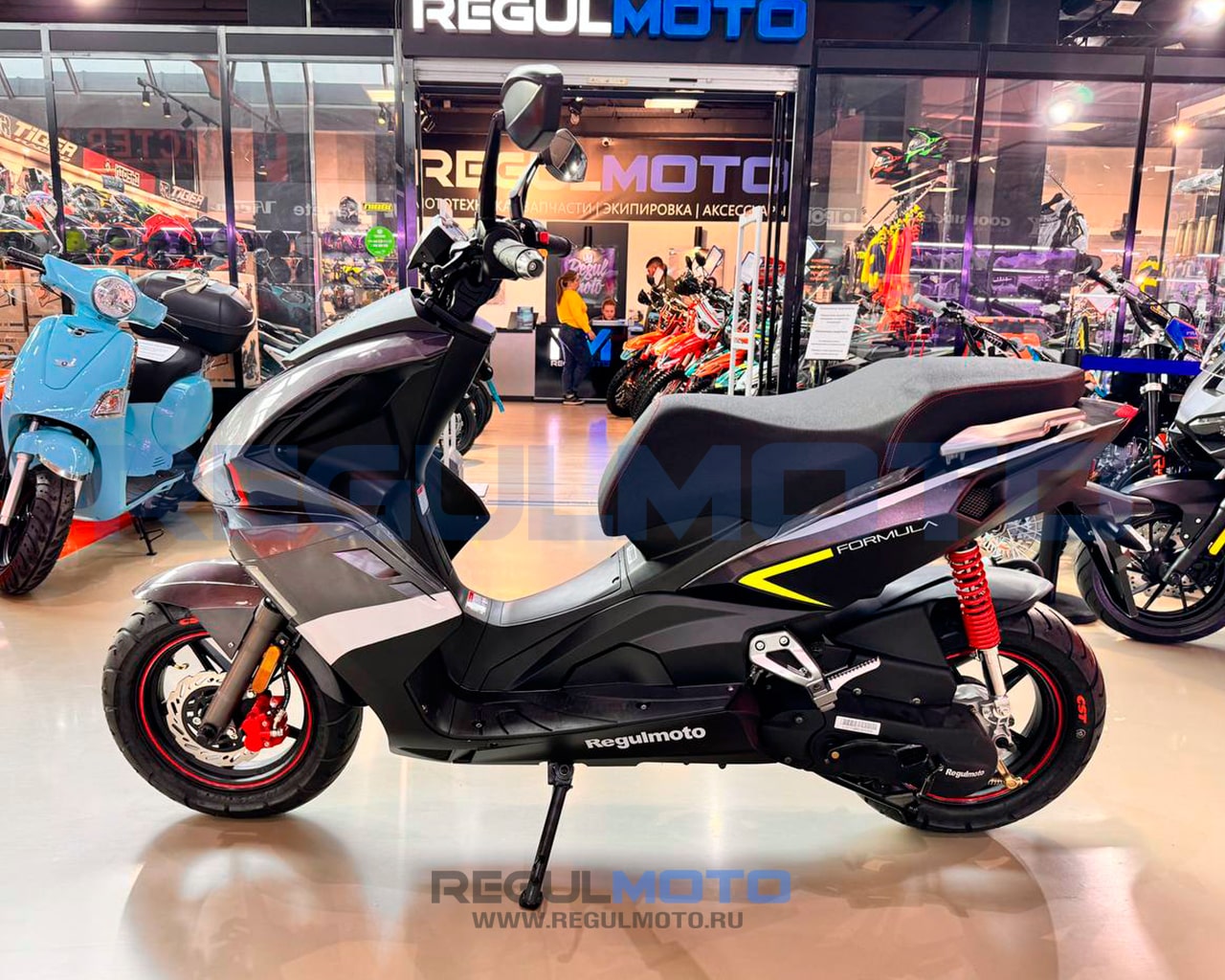 Regulmoto Formula 50 широко известен европейским потребителям: эта удачная модель спортивного скутера производства мощной китайской компании Longjia отличается исключительным дизайном с выраженными итальянскими корнями, высоким качеством сборки и компонентов. Дисковые гидравлические тормоза на переднем и барабнным на заднем колесе, энергоемкая подвеска, автоматическая трансмиссия и электростартер обеспечивают удобство управления.