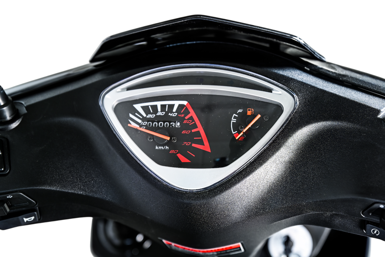 Модель укомплектована яркой передней оптикой, информативной приборной панелью и вместительным подседельным багажным отделением для хранения личных вещей. Прочный пластиковый обвес и усиленная рама гарантируют долговечность и устойчивость к ежедневным нагрузкам.
