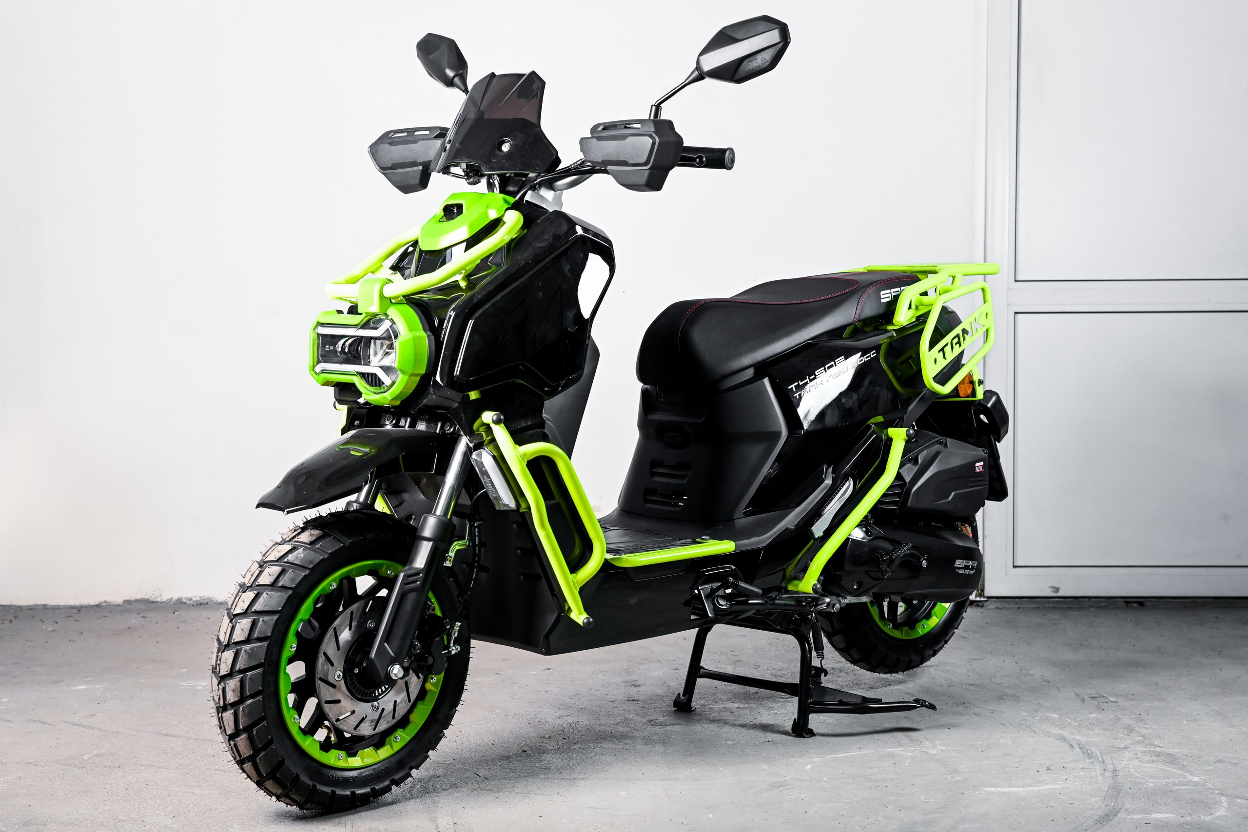 SPRMOTORS Tank NEW — обновлённая версия популярного скутера с брутальным характером, разработанная для уверенной и комфортной езды в городе и за его пределами. Модель получила современный дизайн, улучшенные элементы оснащения и подчёркнуто внедорожный стиль, который выделяет её в городском потоке.