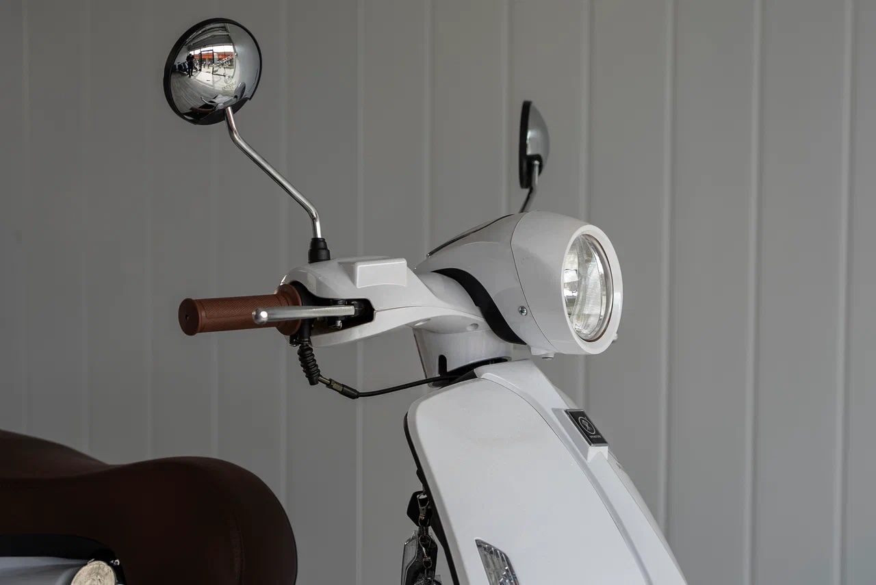 SPRMOTORS Vespa — элегантный городской скутер в классическом стиле, вдохновлённом культовым итальянским дизайном. Модель сочетает в себе ретро-внешность и современные технические решения, предлагая комфортное и стильное средство передвижения для повседневных поездок по городу.