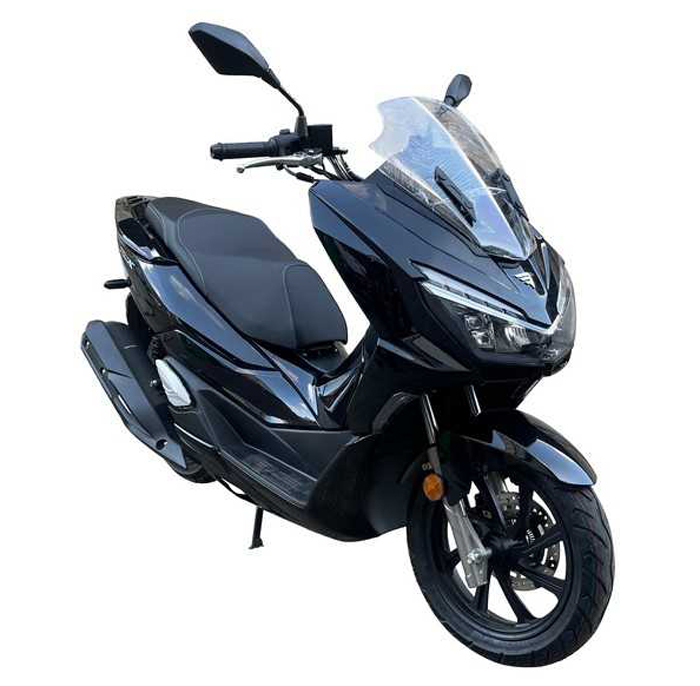 Скутер VENTO PCX (200) - это новинка от Венто, дизайн скутера скопирован с легендарного скутера Honda PCX150. Венто PCX 200 это большой и комфортный скутер и его можно отнести к классу максискутеров. Отличается очень хорошим качеством сборки, по сравнению с другим его китайскими собратьями. Скутер обладает очень стильной внешностью со светодиодной линзованной оптикой, с красивой электронной панелью приборов.