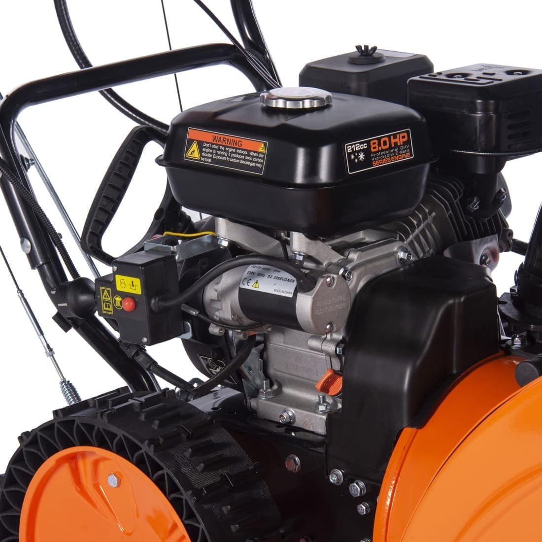 Скорость уборки: 6 передач вперёд и 2 назад, что позволяет выбрать оптимальный режим работы в зависимости от сложности задачи и типа снега. Металлическая рама с добавлением холодостойкого нихрома обеспечивает долговечность конструкции и возможность работать даже при экстремально низких температурах.