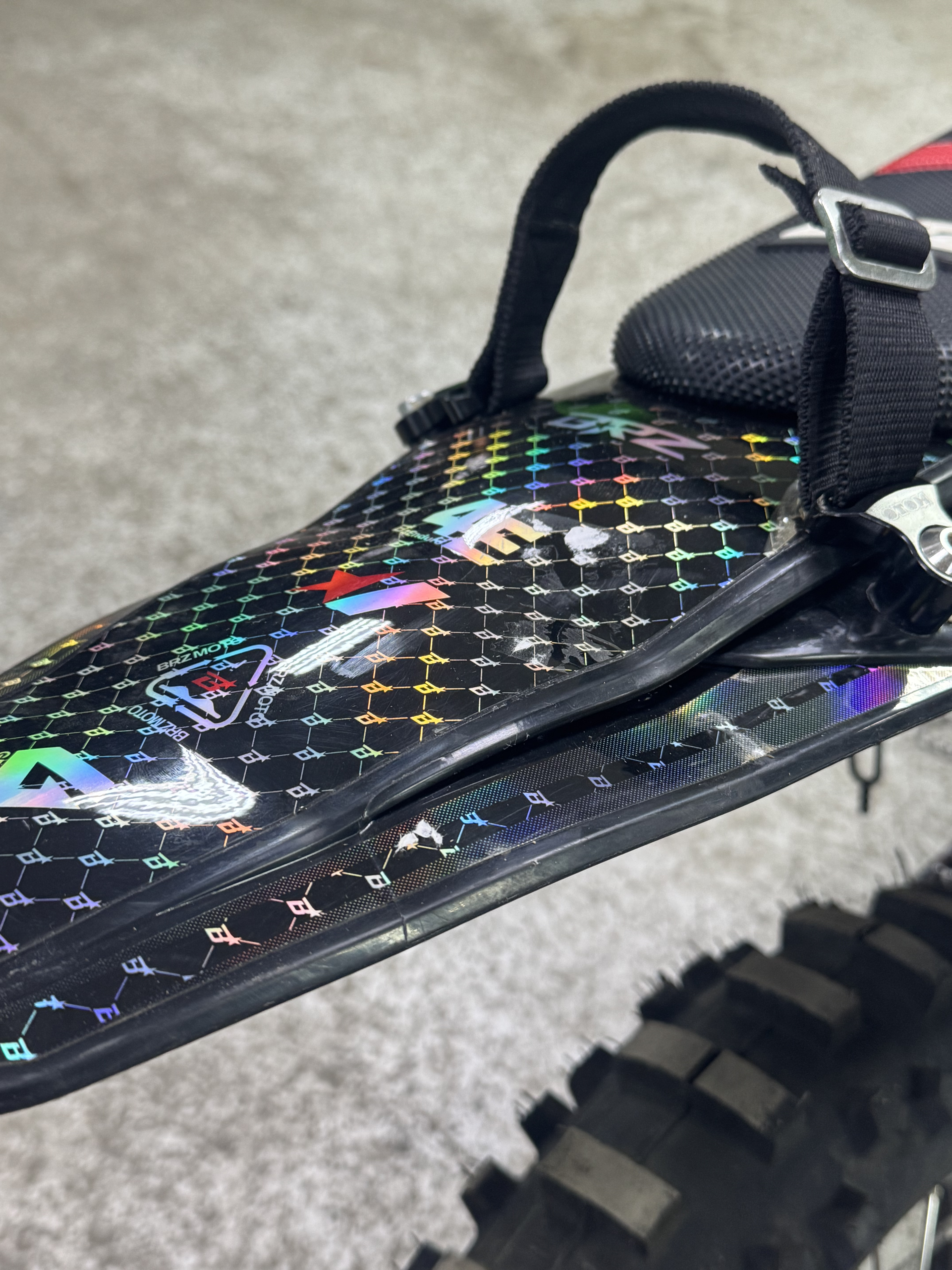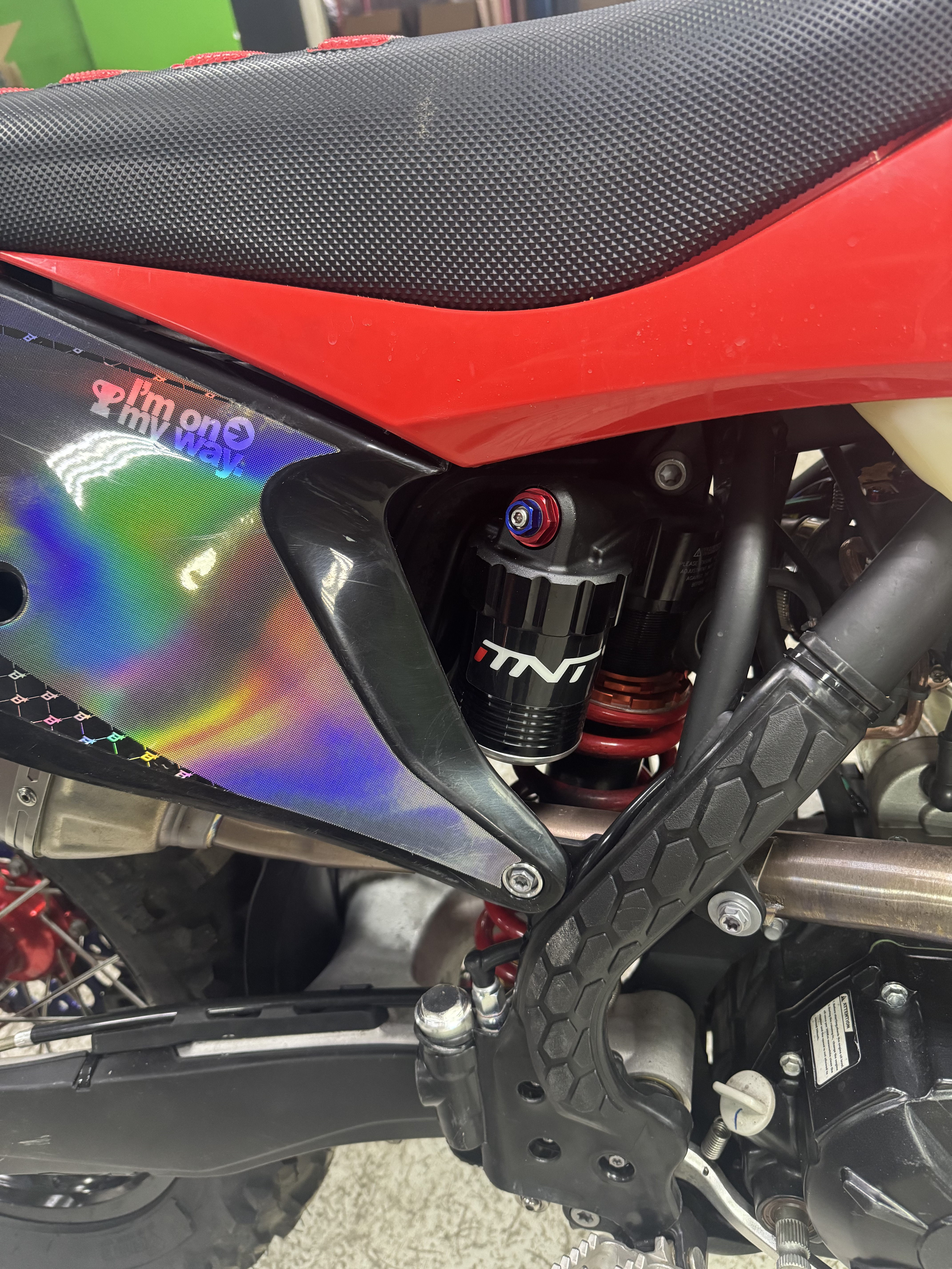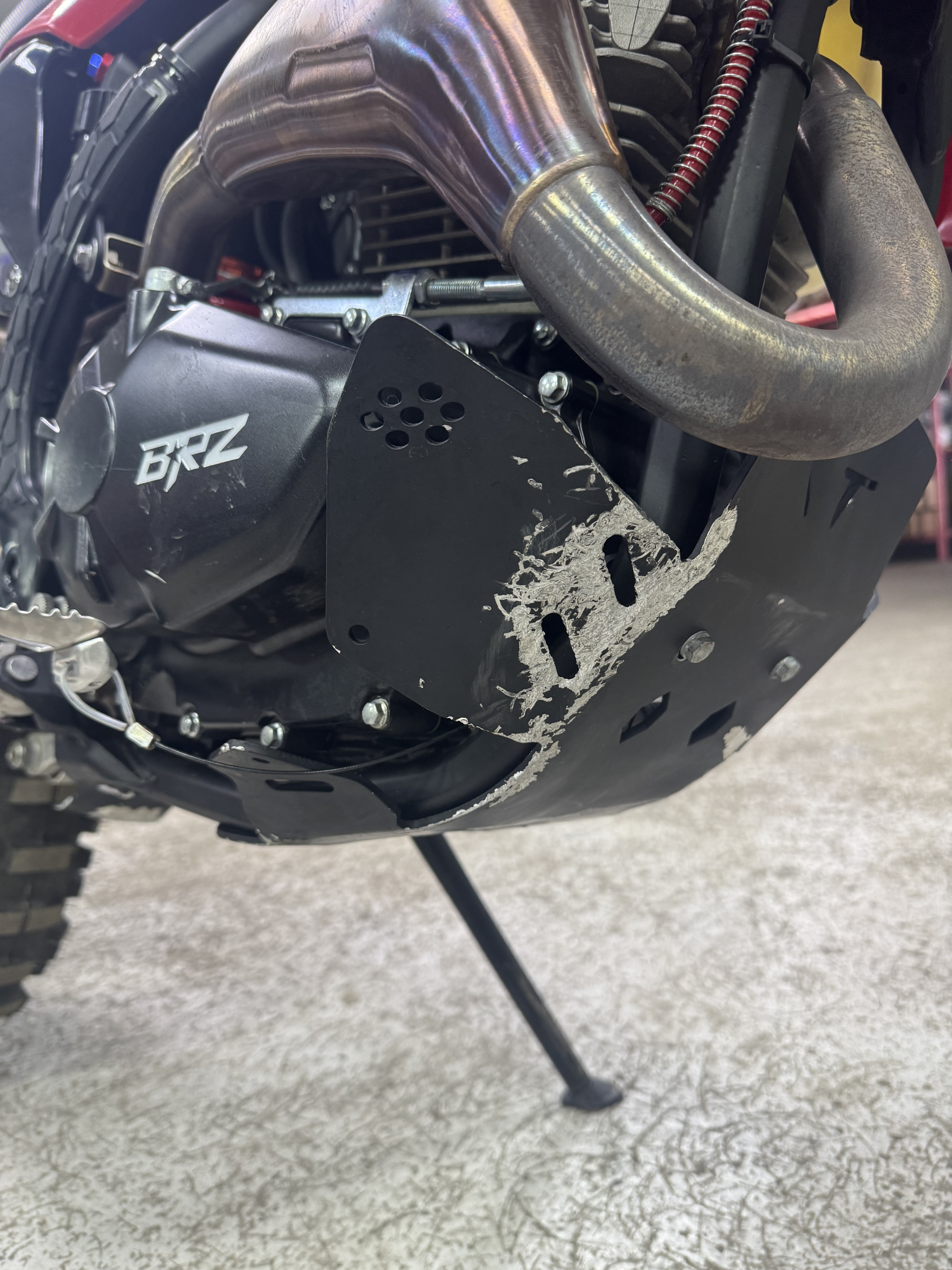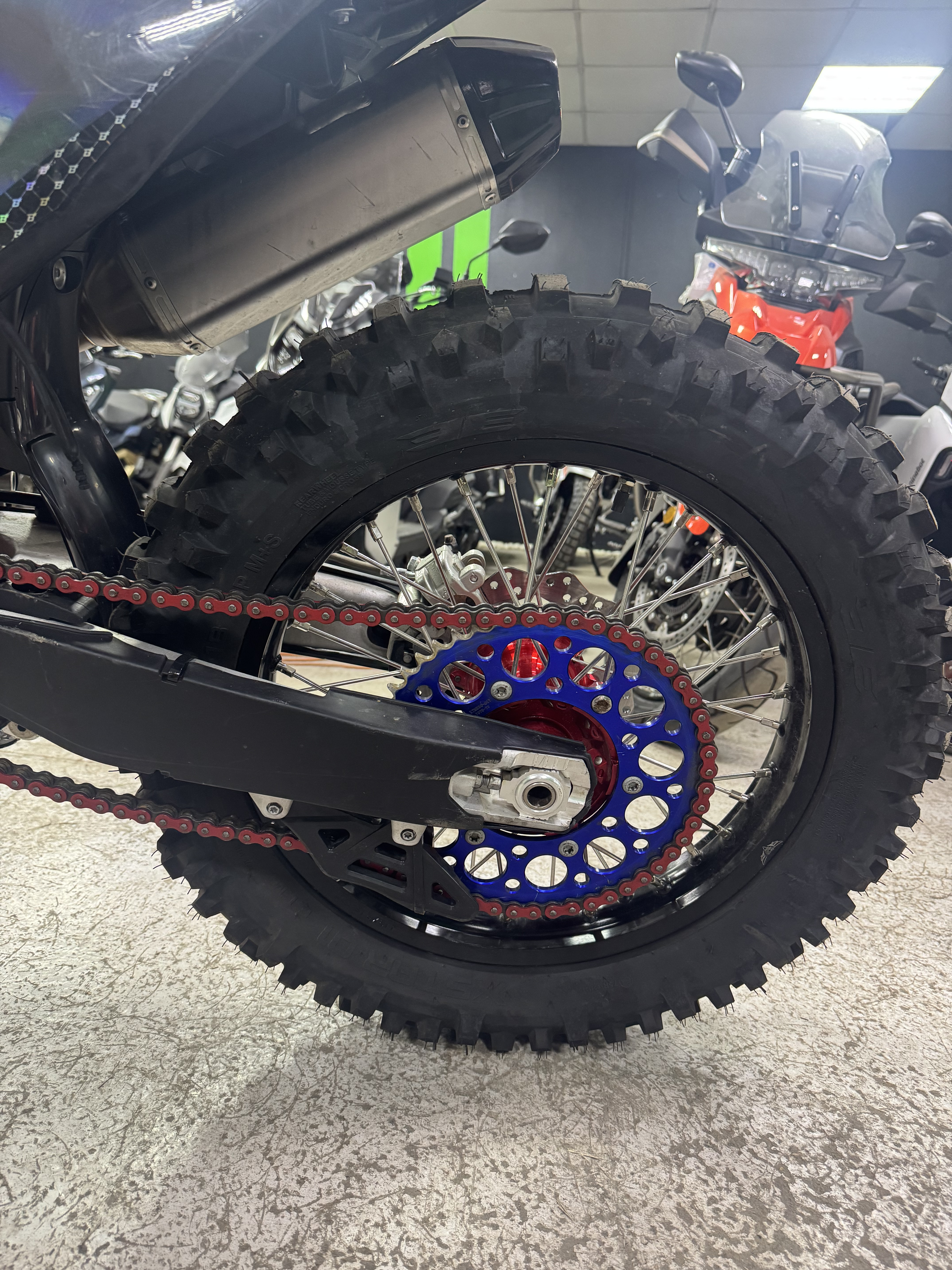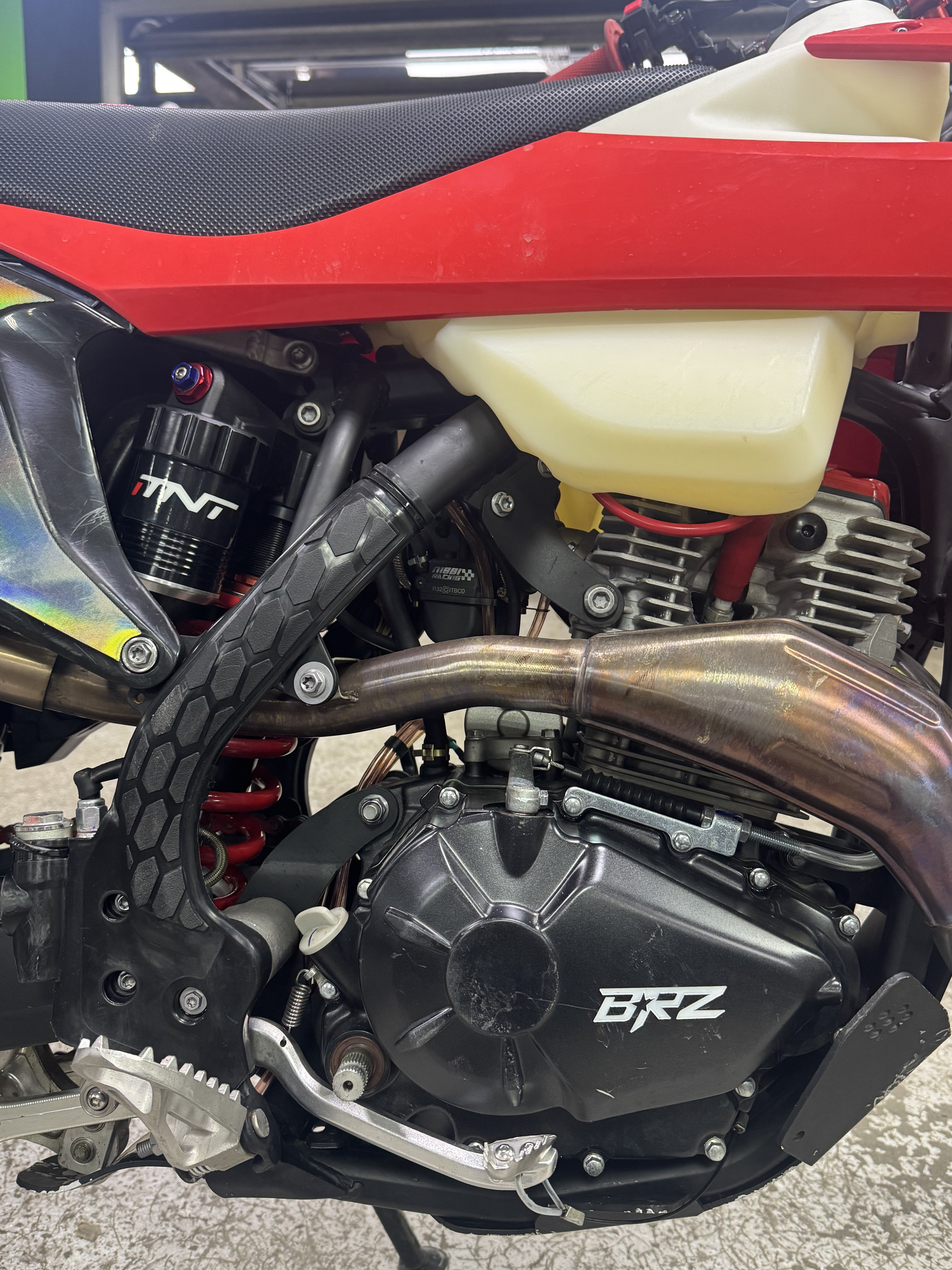 Мотоцикл BRZ X5S (ZS172FMM-7 4V 2023 г) RED - та самая всеми любимая модель четырехклапанной воздушки BRZ, на топовых компонентах. Мотоцикл построен на раме КТМ 19-22, мотор 264 кубиков с четырехклапанной головой, который работает в паре с карбюратором NIBBI RACING BLACK PE30. Передняя вилка MNT с регулировками сжатия и отбоя 950mm. Задний моноамортизатор MNT с прогрессией, выносным бачком и регулировками на сжатие и отбой 480мм. Рулевая траверса фрезерованная, X-TRIG. Обода алюминиевые Enduro X-Series, толстые спицы, фрезерованные алюминиевые ступицы. Установлена хорошая алюминиевая защита мотора. Немного погнут "хвост", в остальном всё работает в штатном режиме.