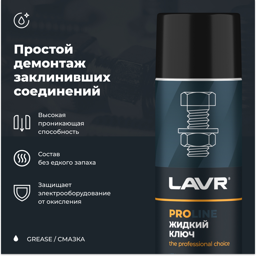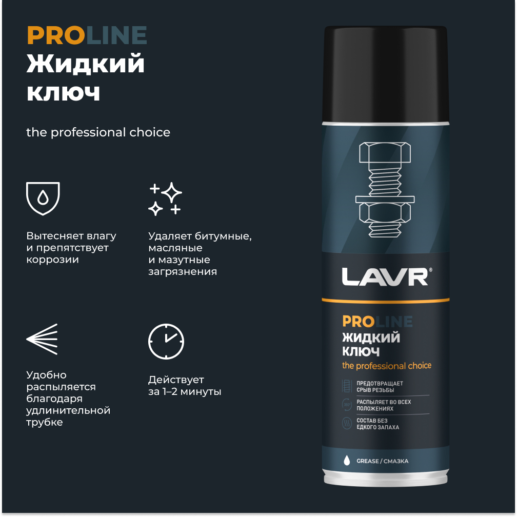 - Универсальная проникающая смазка «Жидкий ключ» LAVR PRO LINE, 650 мл / Ln3510