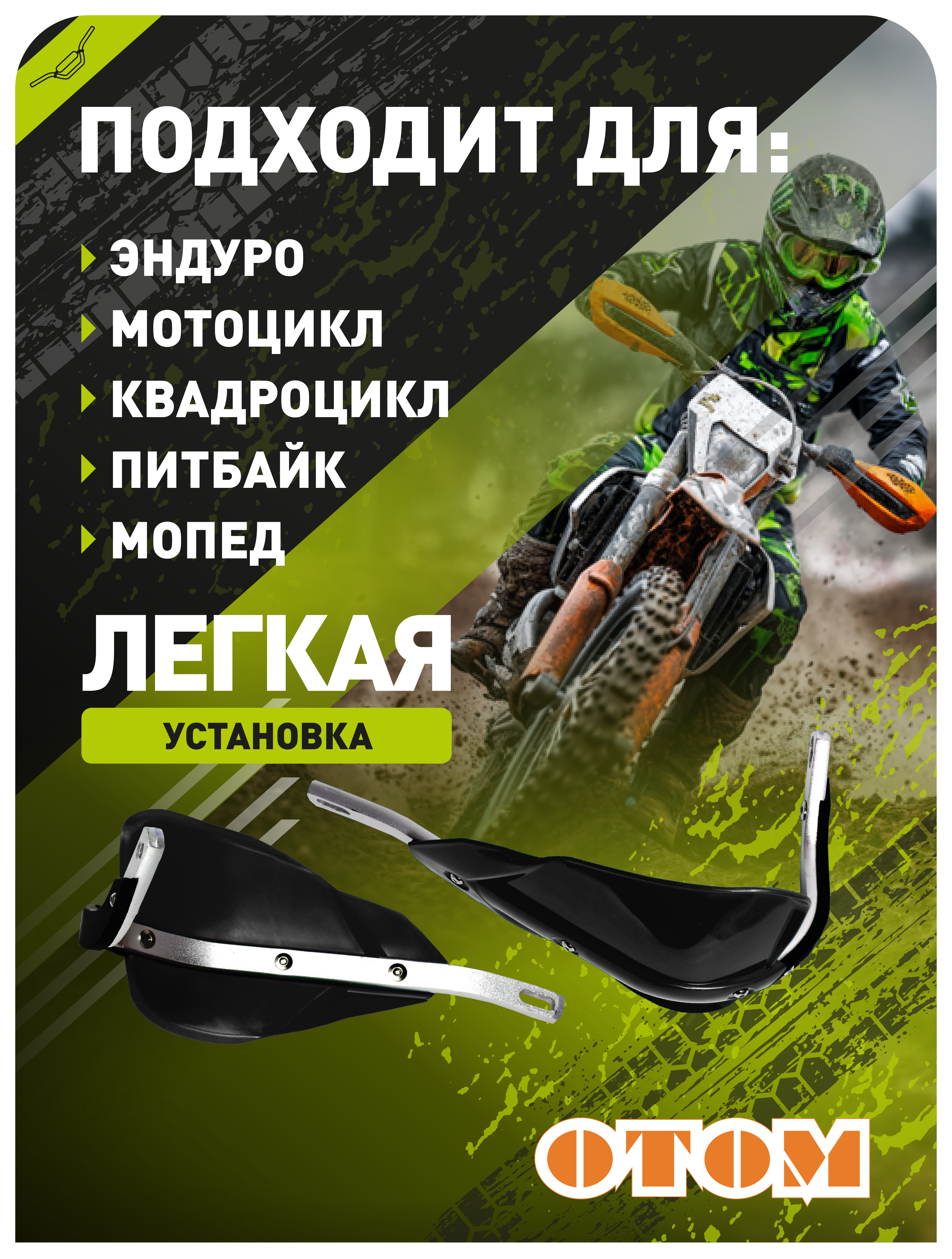 Защита OTOM HP14 подходит для большинства внедорожных моделей, превращая любую поездку в уверенное приключение. Грязь, песок, неровности трассы — ваши руки остаются под защитой, позволяя полностью сосредоточиться на управлении.