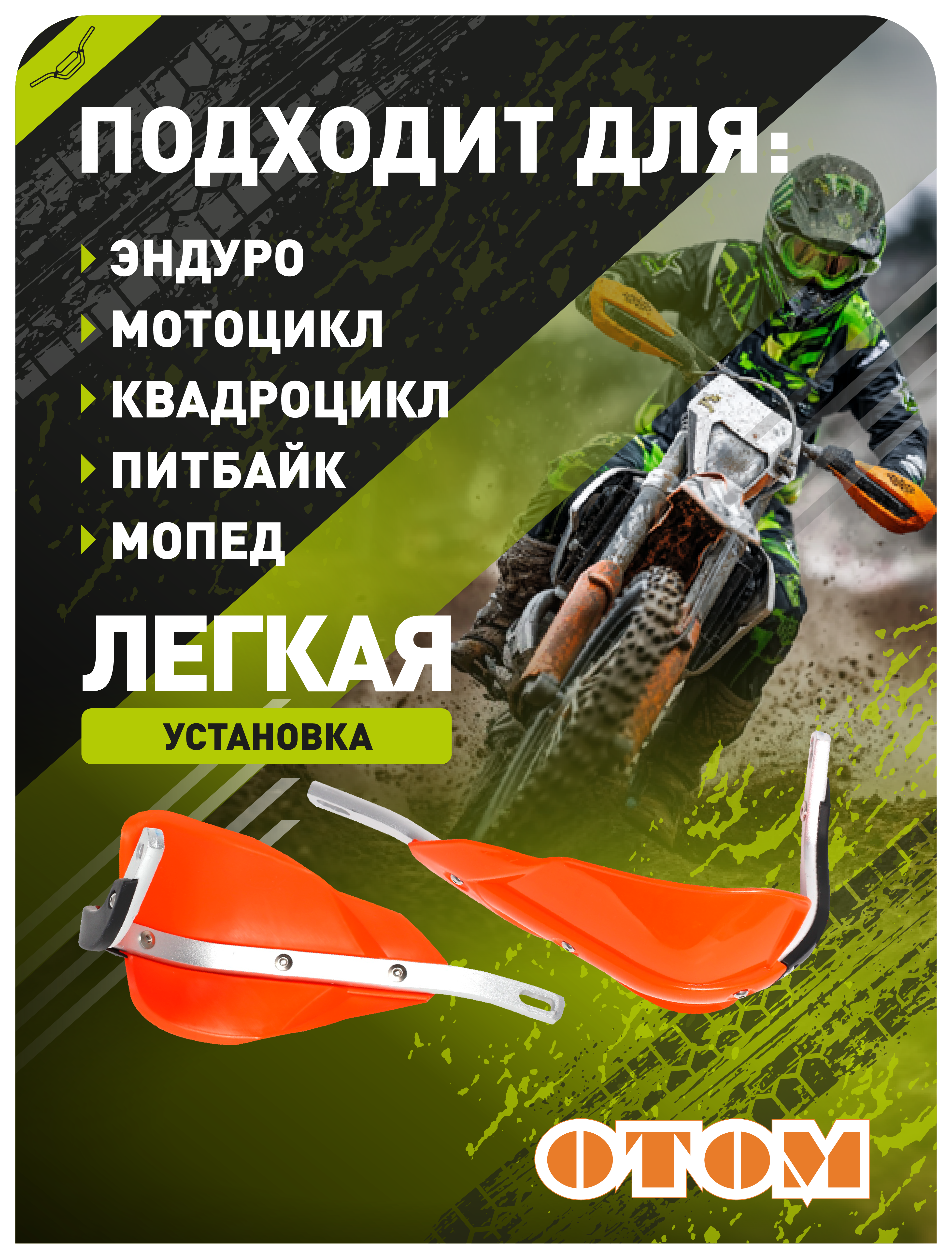 Защита OTOM HP14 подходит для большинства внедорожных моделей, превращая любую поездку в уверенное приключение. Грязь, песок, неровности трассы — ваши руки остаются под защитой, позволяя полностью сосредоточиться на управлении.