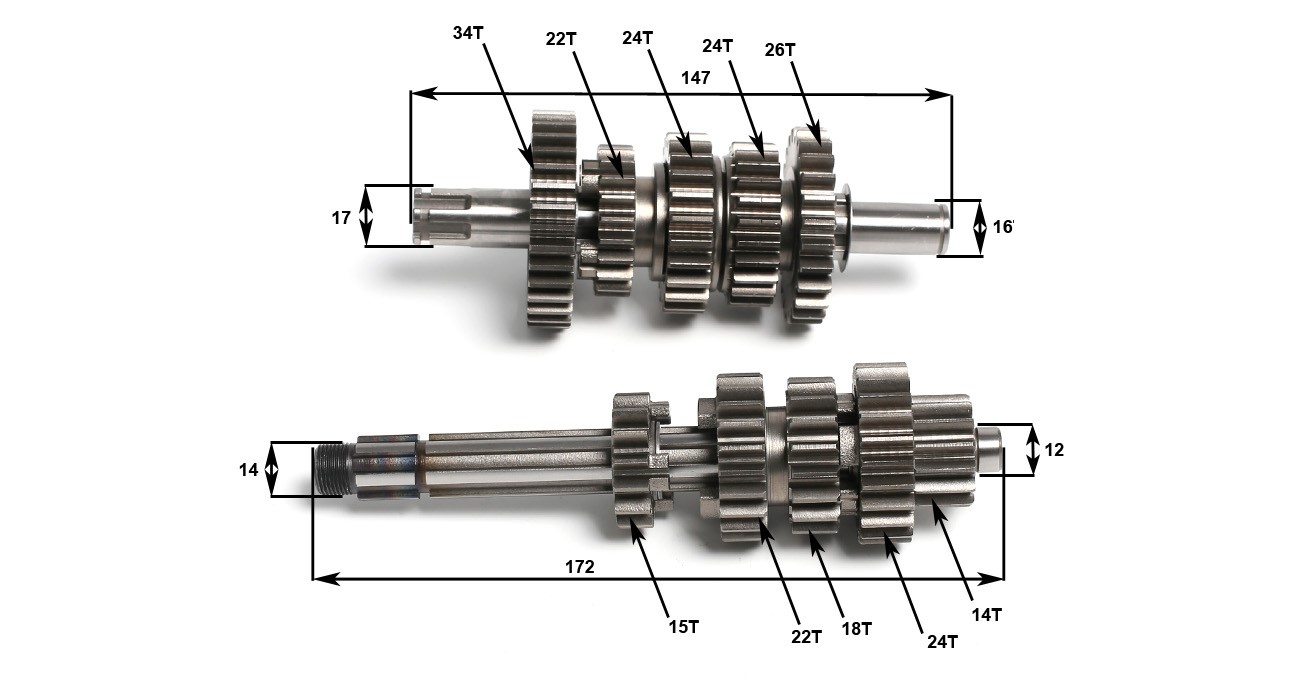Вал КПП первичный в сборе KAYO двиг. YX140 см3 (P040176) CN