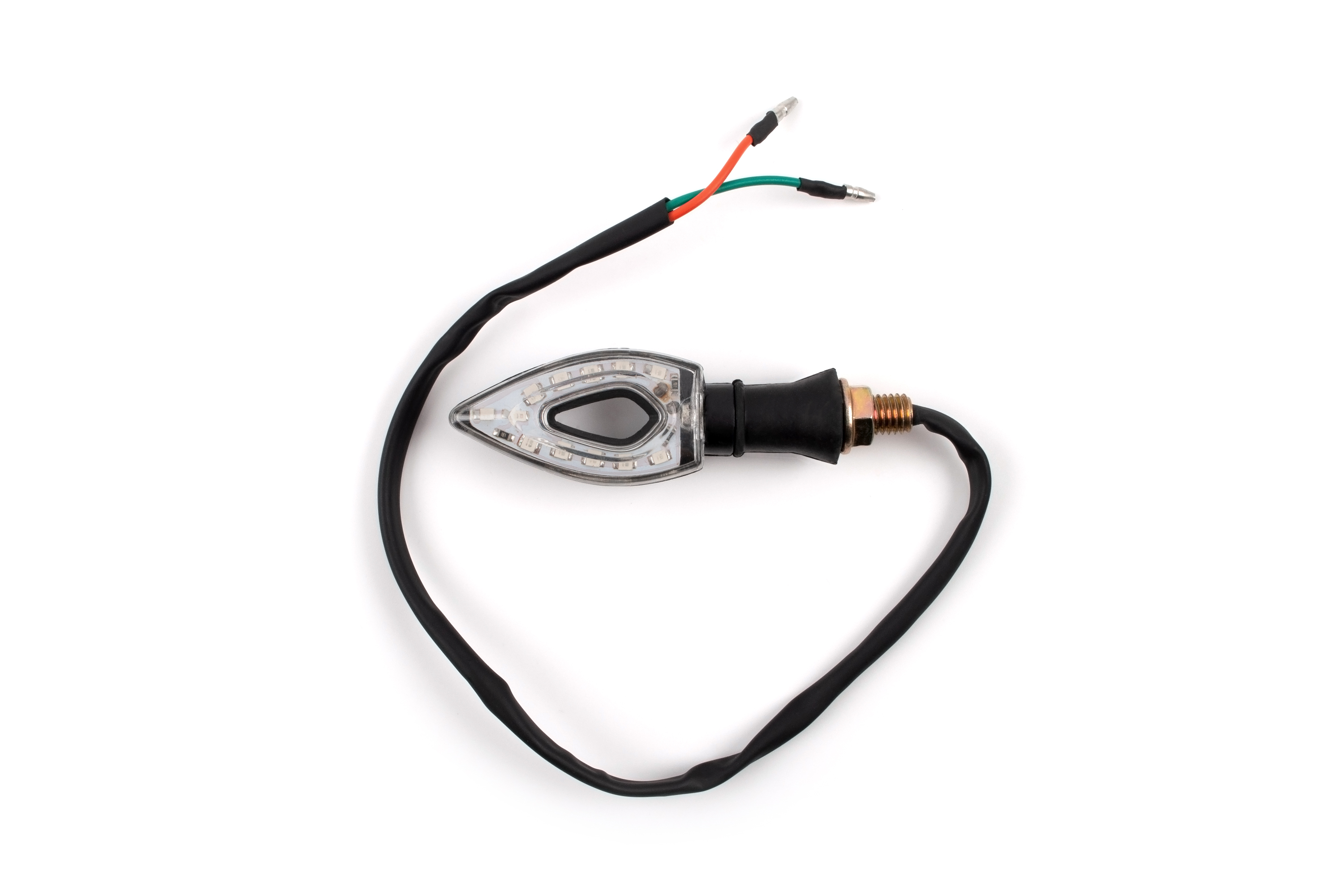 - Комплект светодиодных указателей поворота для мотоцикла (2 шт, дизайн «Стрела», прозрачное стекло)