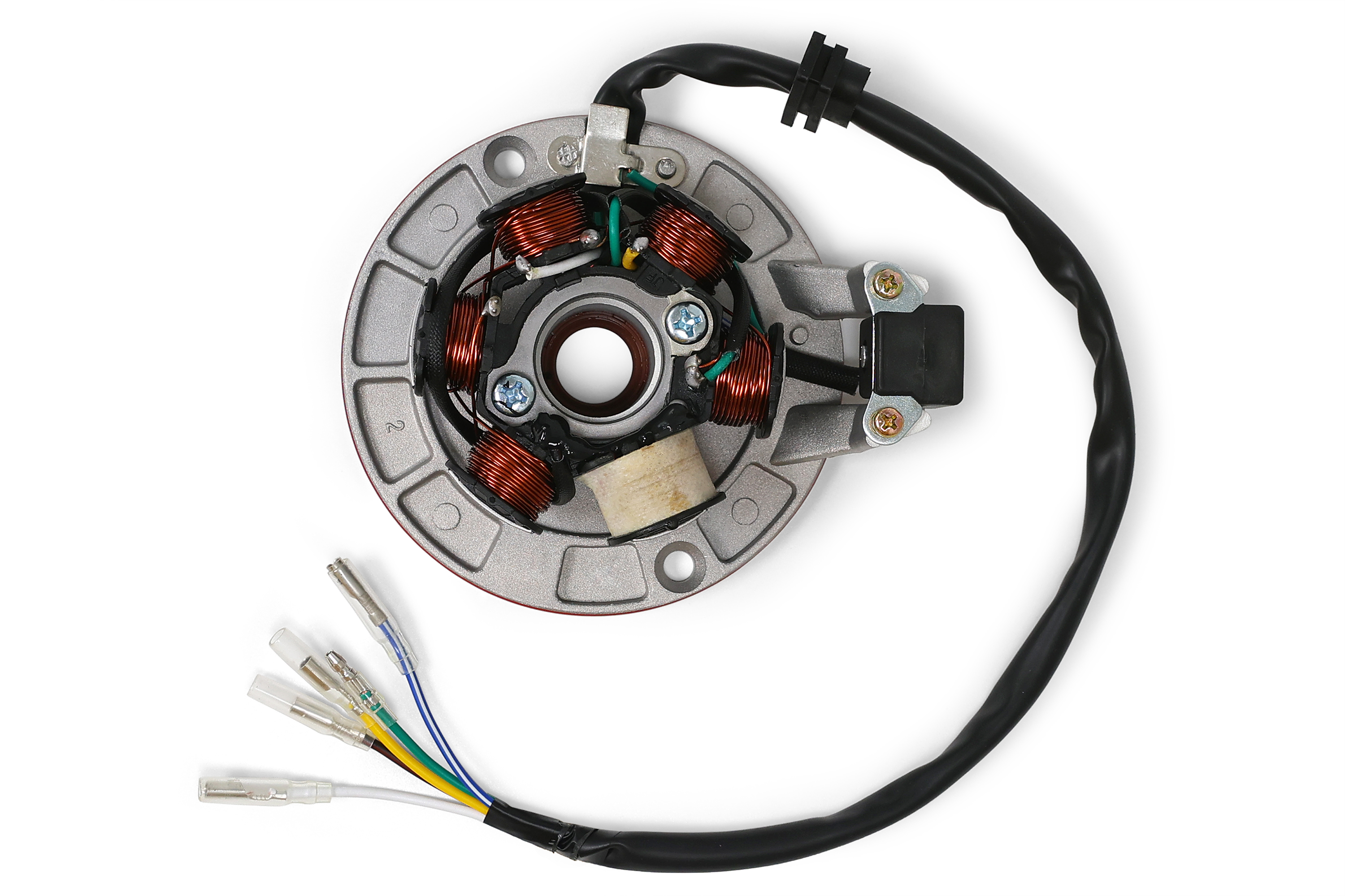 - Статор генератора (магнето) для горизонтальных двигателей YX 125–160 см³. Обеспечивает питание бортовой сети и стабильный импульс зажигания для систем AC-CDI. Точная посадка под картеры YX и штатные разъёмы обеспечивает быструю установку и надёжную работу.