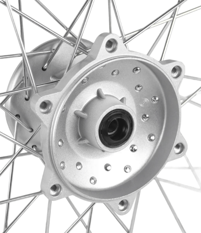 Готовое к установке переднее спицованное колесо полноразмерного формата (21 дюйм). Это идеальное и самое быстрое решение для ремонта ходовой части вашего эндуро-мотоцикла. Покупка колеса в сборе «с завода» полностью избавляет вас от необходимости искать подходящие спицы, оплачивать дорогостоящие услуги мастера по переспицовке и исправлению «восьмерок». Сняли старое гнутое колесо, перекинули резину и тормозной диск — и можно снова отправляться на бездорожье!
