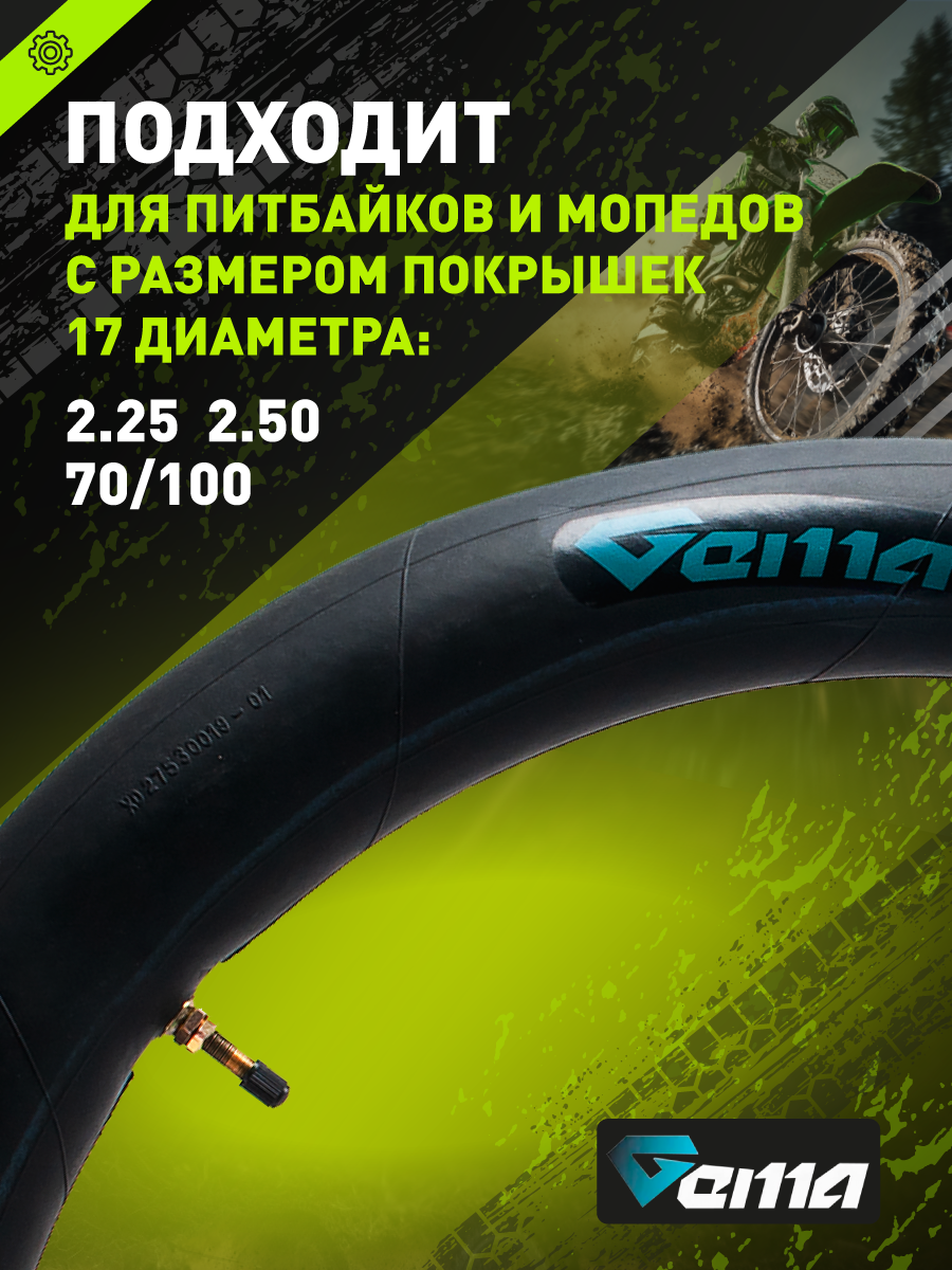 - Размер камеры: 70/100-17" (подходит для шин шириной 2.25–2.50 дюйма)