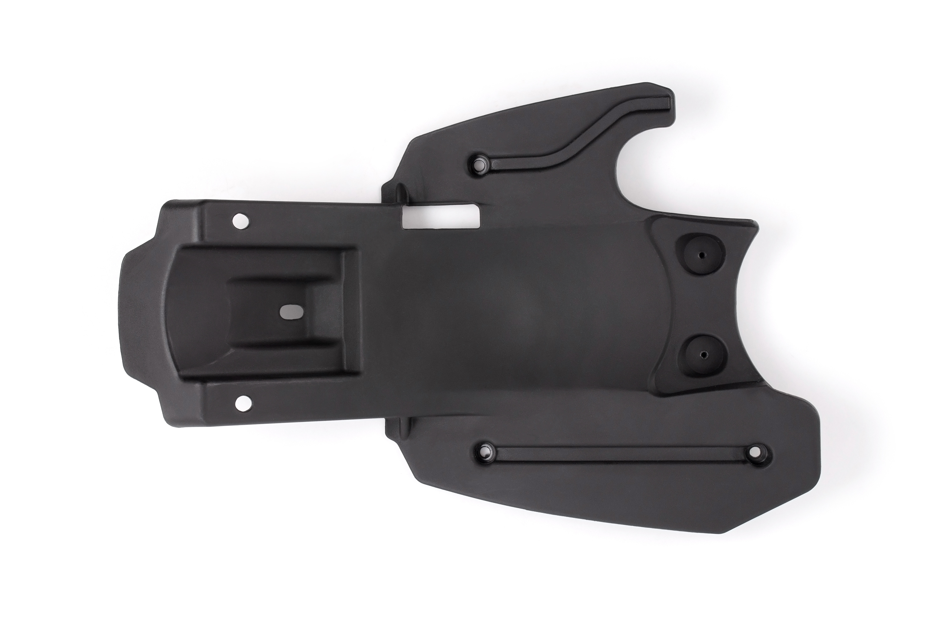 Как видно на фото, пластик имеет специальную рельефную форму с ребрами жесткости и выштамповками. Это придает детали дополнительную прочность на изгиб и скручивание, предотвращая излом при жестких приземлениях.
