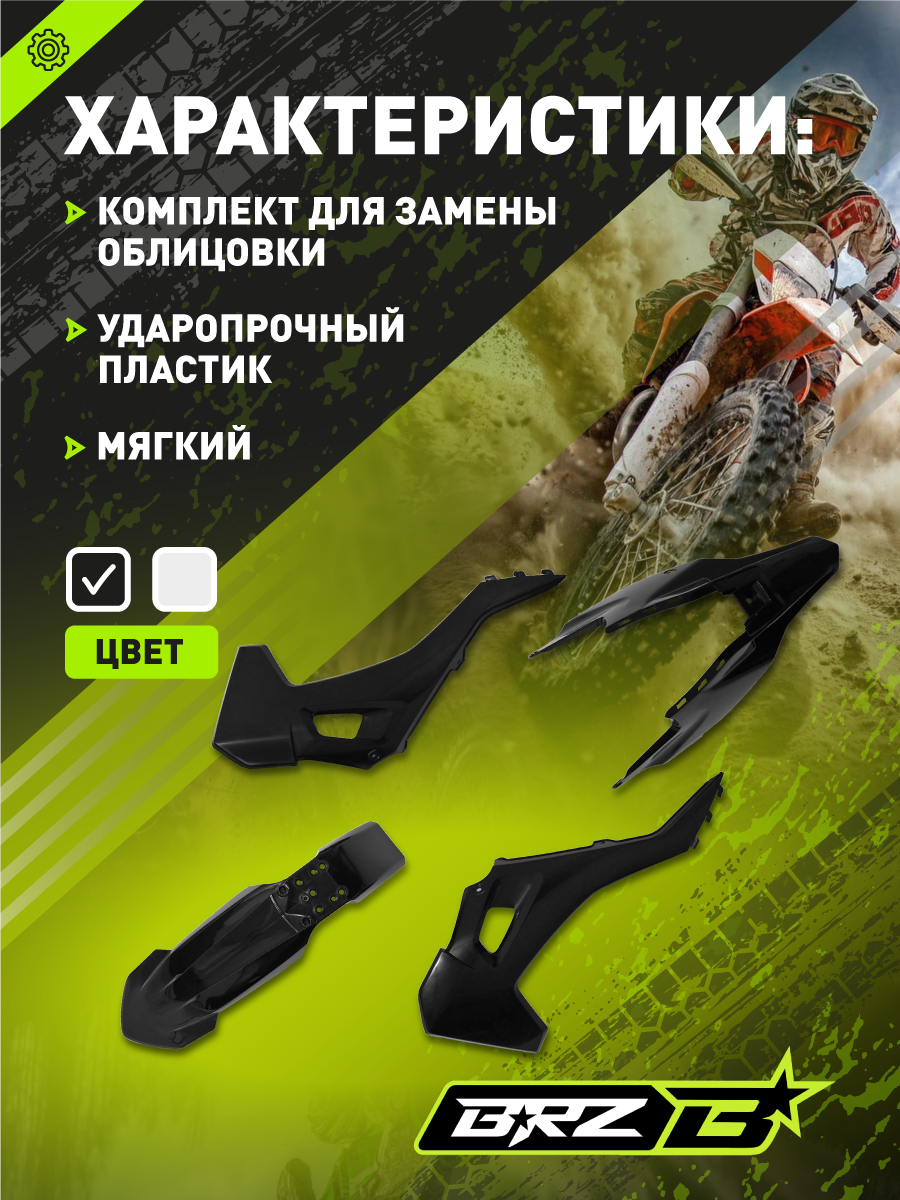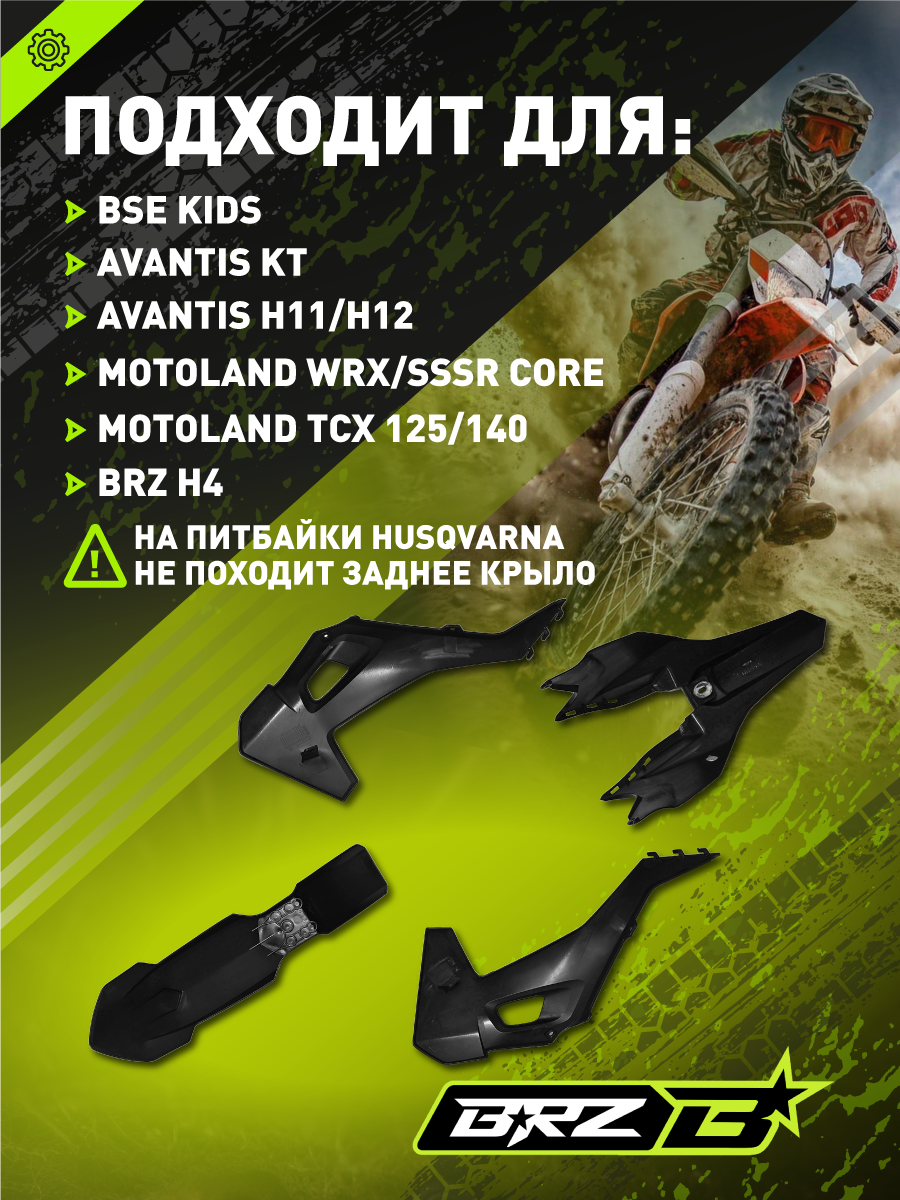 Комплект пластика для питбайка (BSE PH/WELS CRF110 тип) черный NEW