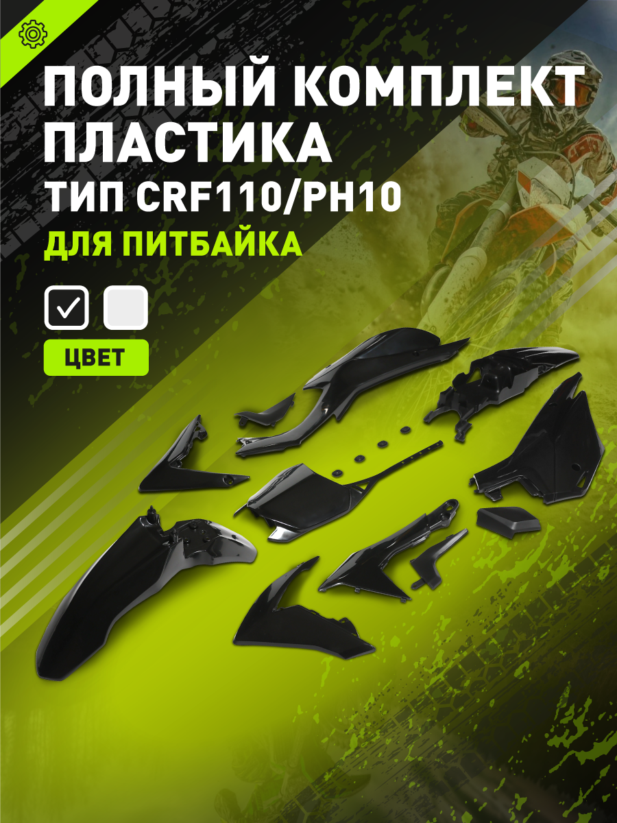 Комплект пластика для питбайка (BSE PH/WELS CRF110 тип) черный NEW