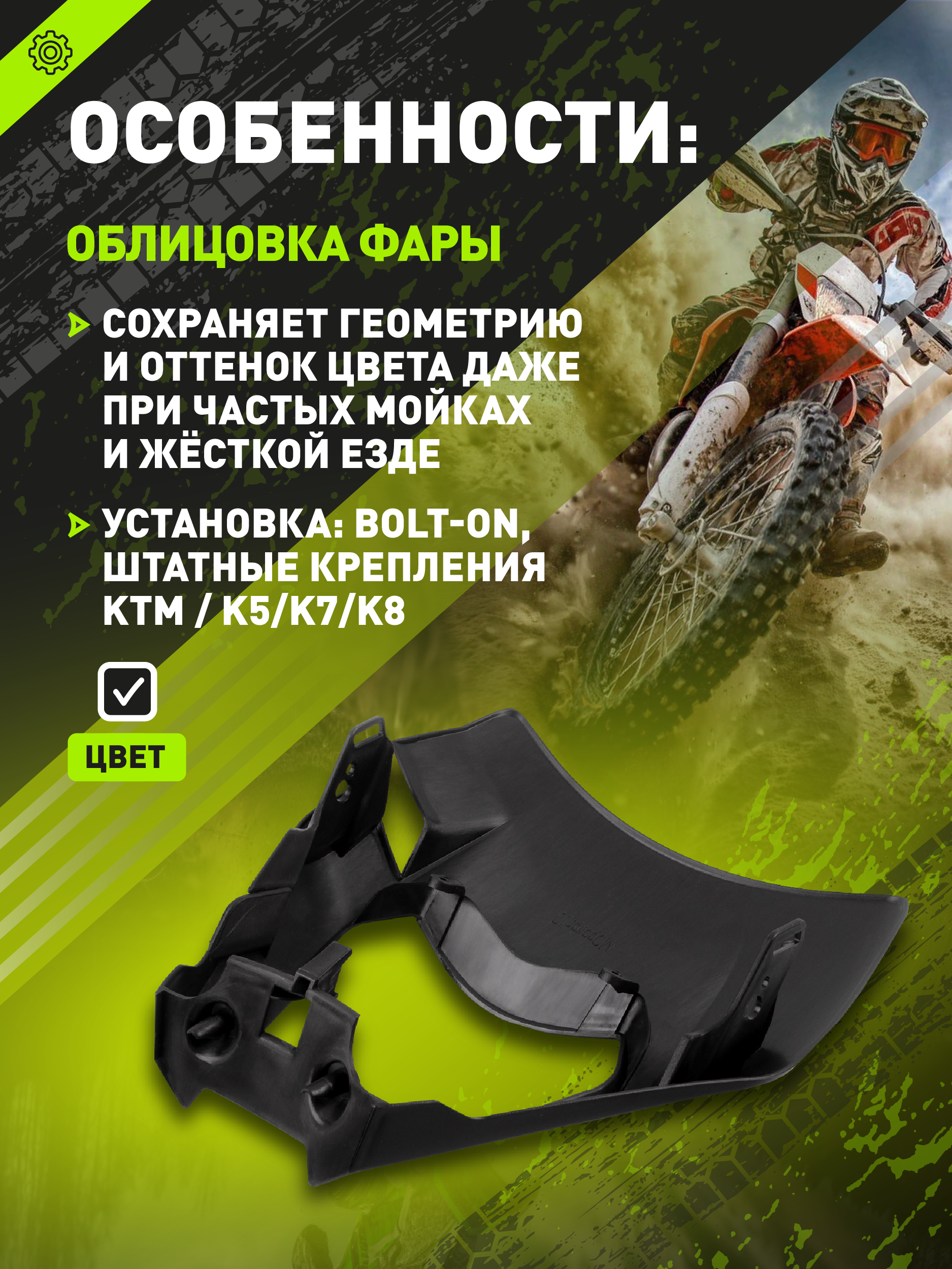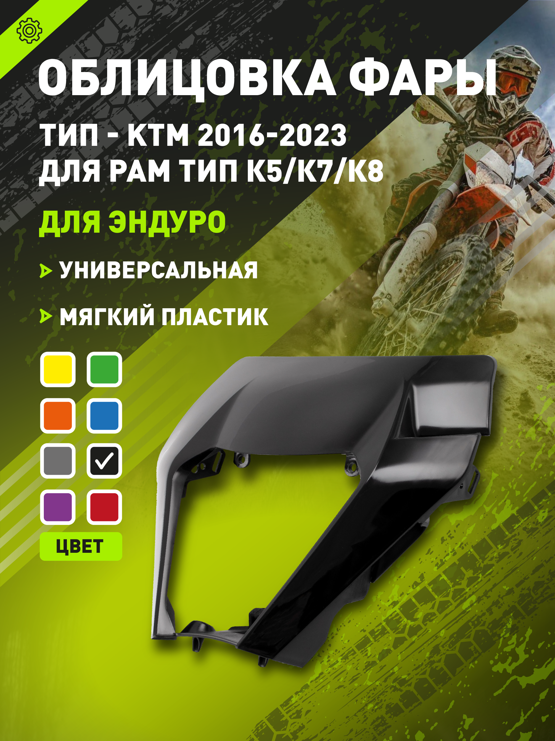 Облицовка фары эндуро KTM 2016-2023 К5/K8 Черная