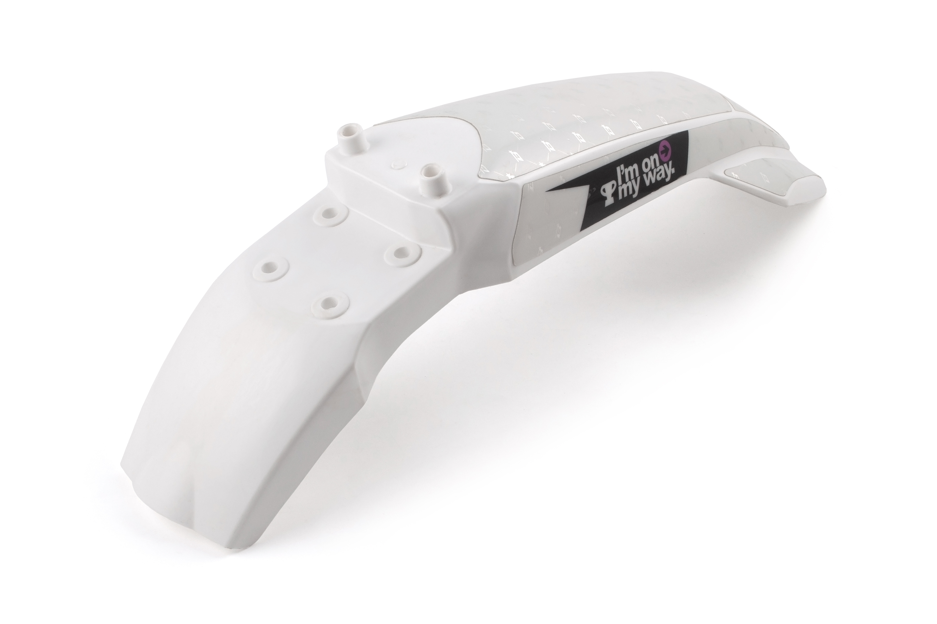 - • Надежный эндуро-пластик: Крыло отлито из вязкого материала. При контакте с деревьями или землей оно пружинит и гнется, а не разлетается на острые осколки.