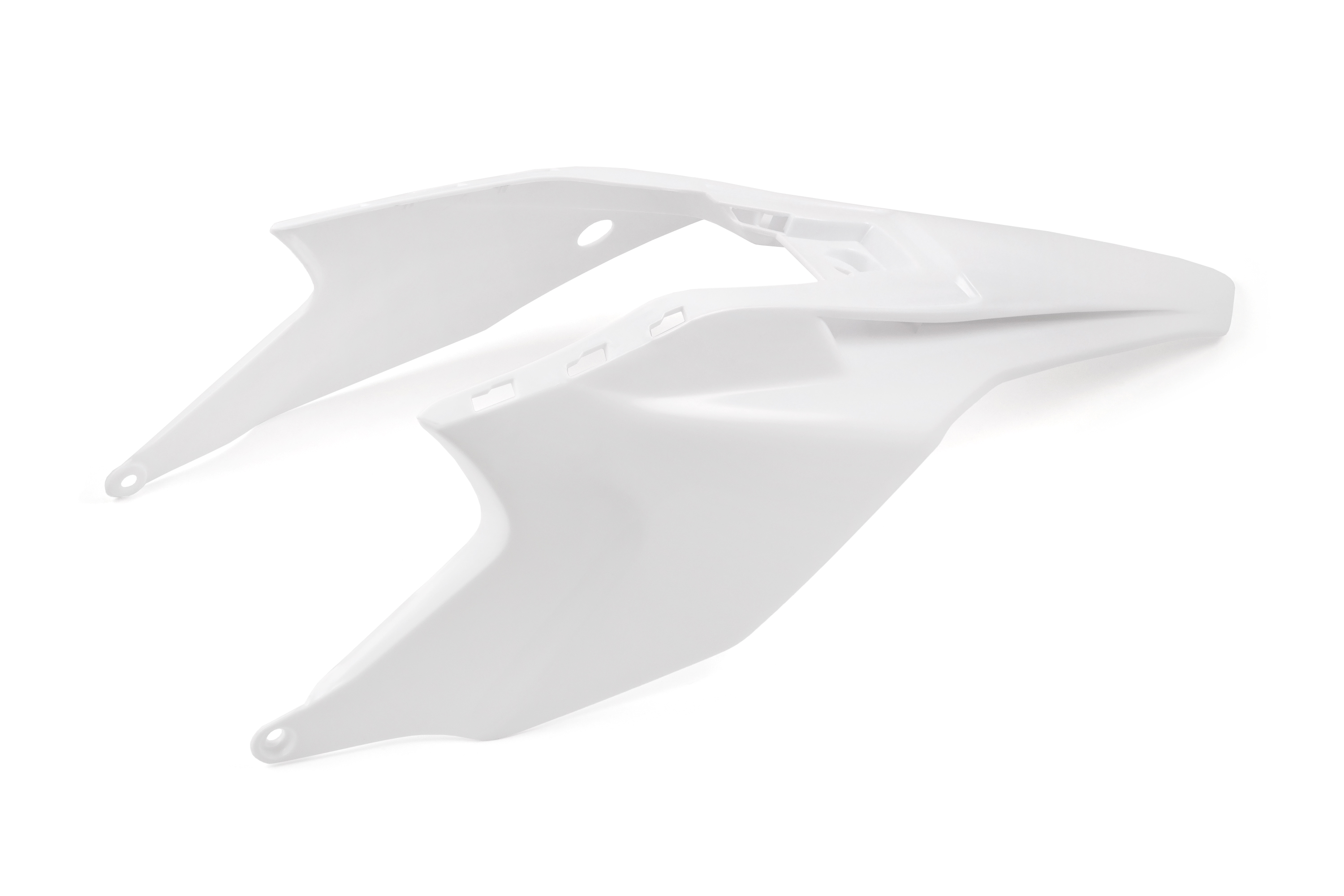 современном, агрессивном дизайне кроссовых мотоциклов KTM SX50 (модельного ряда 2020 года и новее). Деталь поставляется в чистом белом цвете без наклеек, что делает её идеальным «чистым холстом» для оклейки любой кастомной графикой под стиль вашего байка.