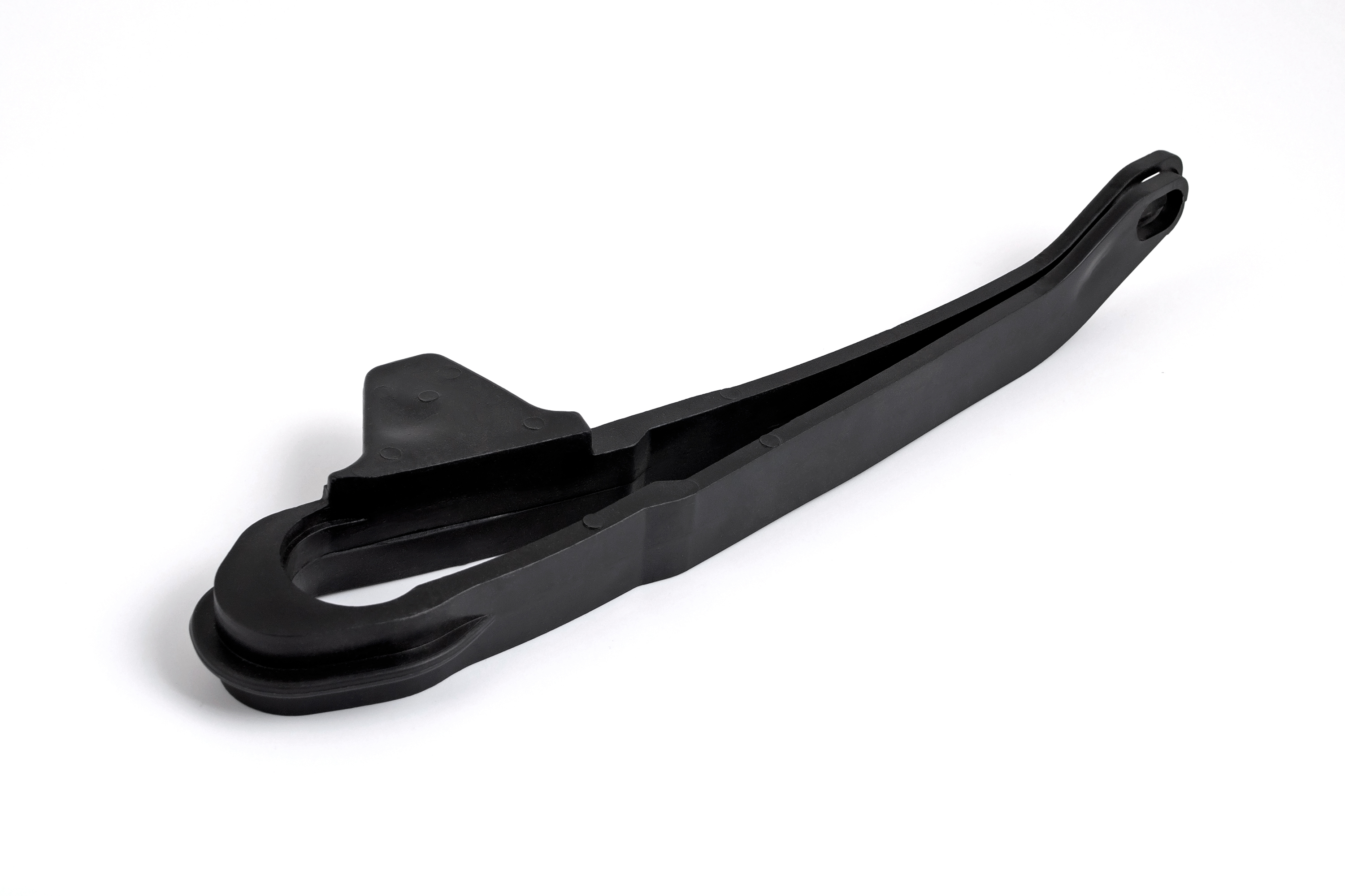 Деталь изготовлена из плотного эластичного полимера (полиуретана/композитного пластика). Материал обладает низким коэффициентом трения, устойчив к ударным нагрузкам, воздействию агрессивных смазок для цепи, грязи и песка.