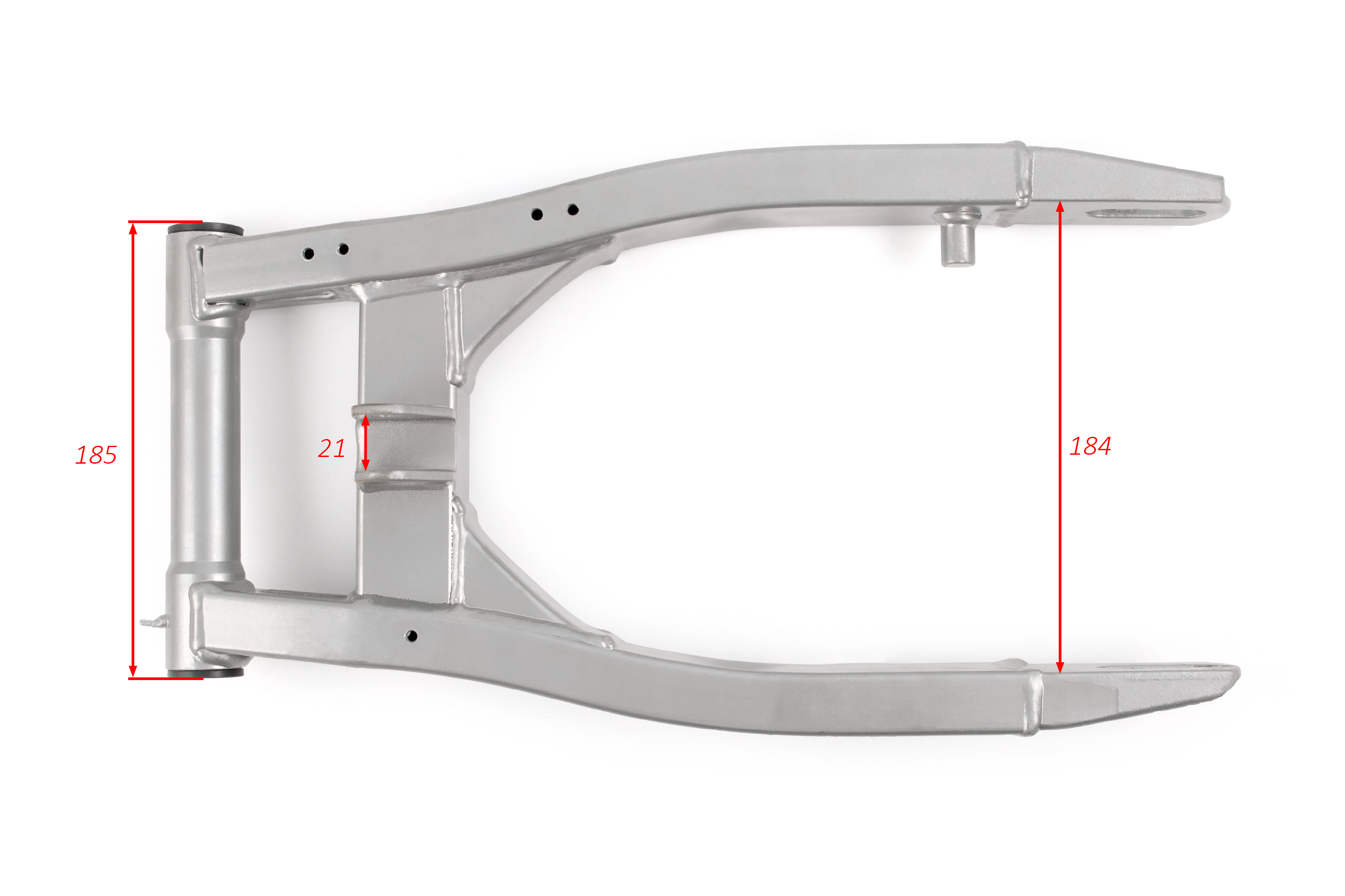 - • Кастомные сборки и другие модели питбайков (перед заказом обязательно сверьте все посадочные размеры: ширину крепления в раму 185 мм и ширину под колесо 184 мм с вашим старым маятником).