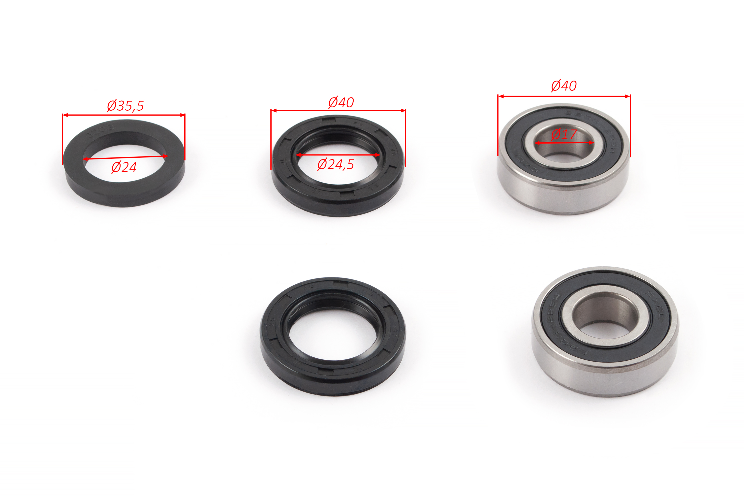 - 2 шт — подшипник 6203: 40 × 17 × 12 мм